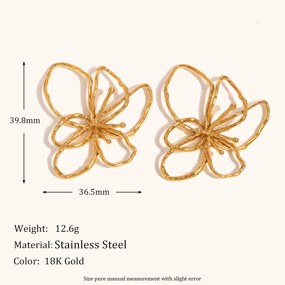 Cruach dhosmálta Graí Earrings, 304 Cruach dhosmálta, Flower, plátáilte, jewelry faisin & do bhean, órga, Díolta De réir Péire