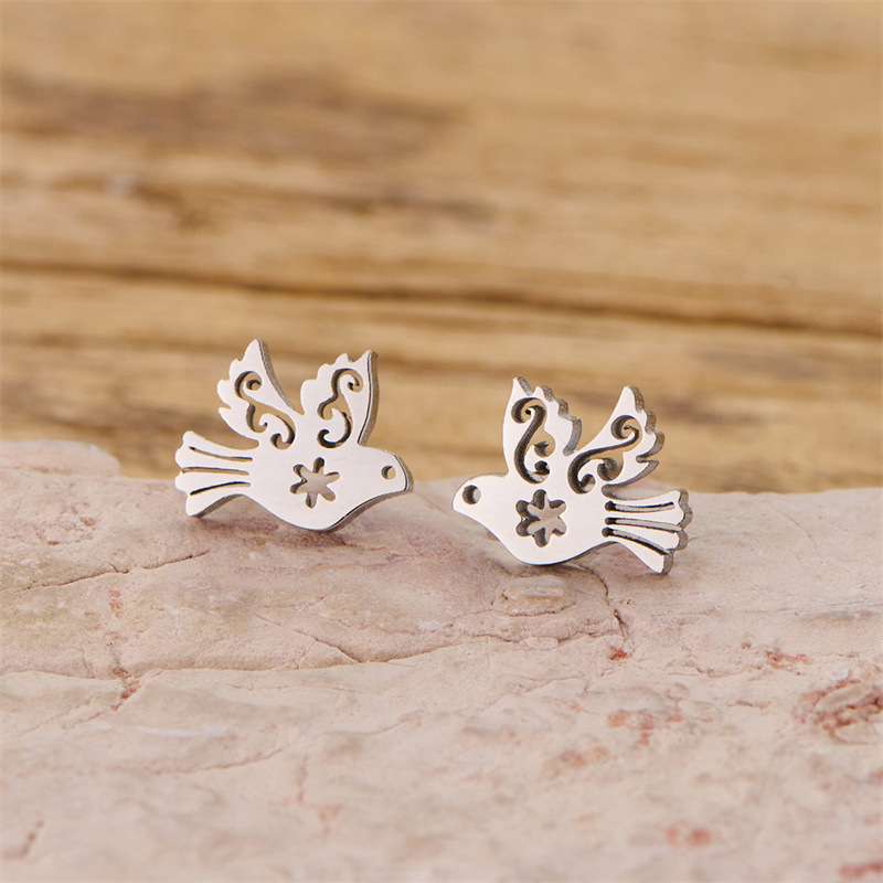 Cruach dhosmálta Graí Earrings, 304 Cruach dhosmálta, Éan, plátáilte, jewelry faisin, dathanna níos mó le haghaidh rogha, 12Péirí/Mála, Díolta De réir Mála