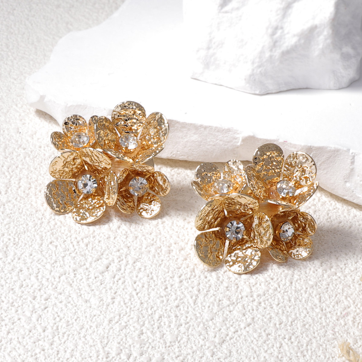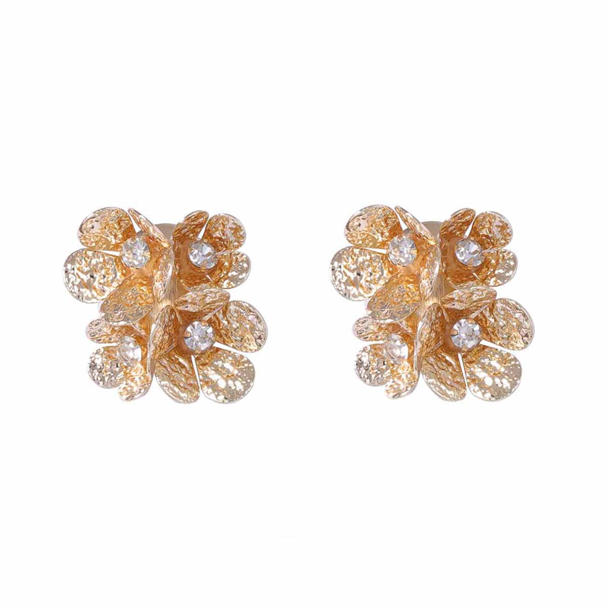 Sinc Alloy Earring Graí, Flower, dath an óir plated, jewelry faisin & le rhinestone, órga, nicil, luaidhe & caidmiam saor in aisce, Díolta De réir Péire