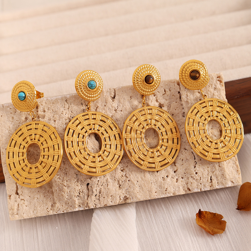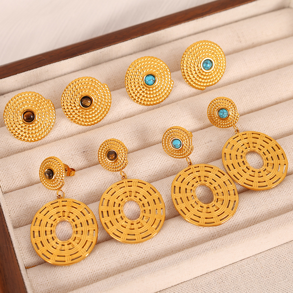 1:EH349 brown tiger eye gold earrings2:EH349 turquoise gold earrings3:EH350 brown tiger eye gold earrings4:EH350 turquoise gold earrings