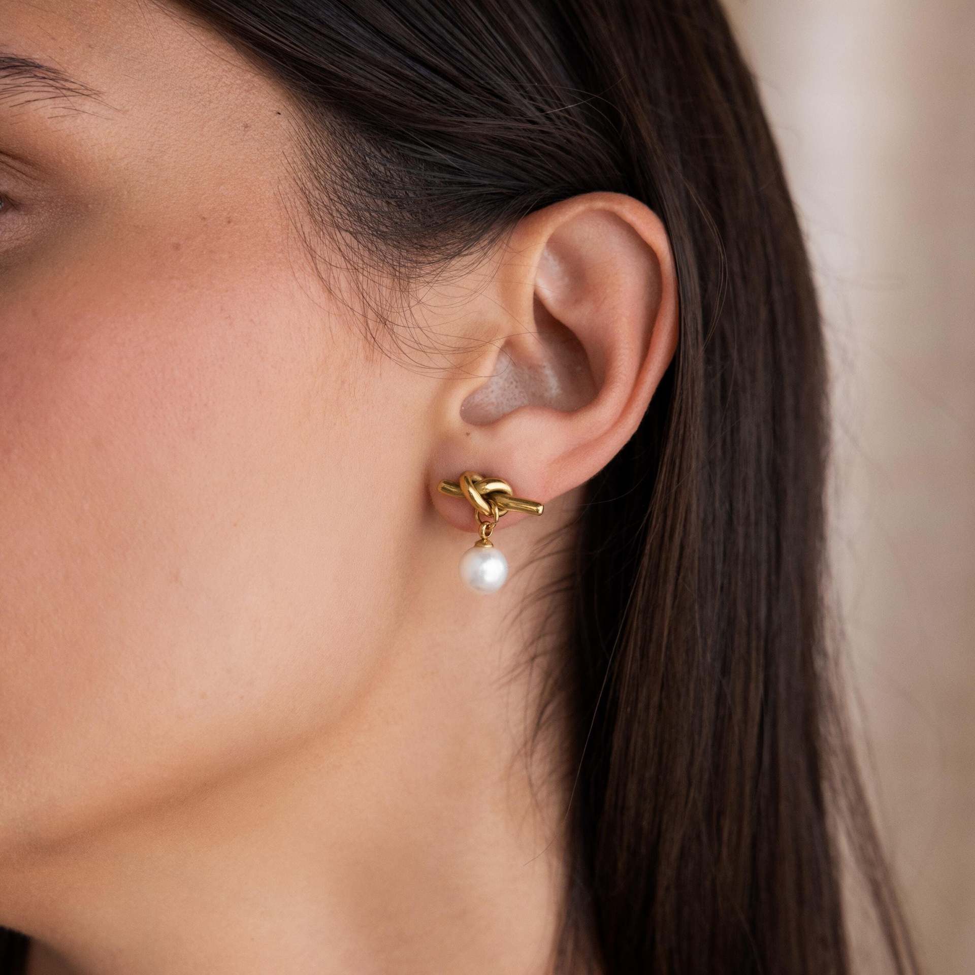 Cruach dhosmálta Buail Earring, 304 Cruach dhosmálta, le Cloch Nádúrtha & Pearl Plaisteacha, dath an óir plated, do bhean, Díolta De réir Péire