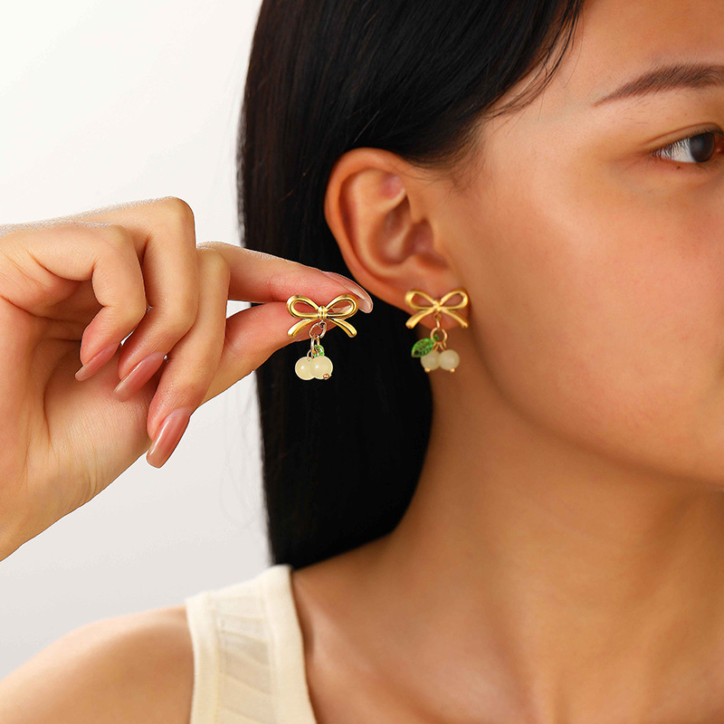 Cruach dhosmálta Buail Earring, 304 Cruach dhosmálta, le Coirníní Gloine, Bowknot, jewelry faisin & do bhean, dathanna níos mó le haghaidh rogha, 20x25mm, Díolta De réir Péire