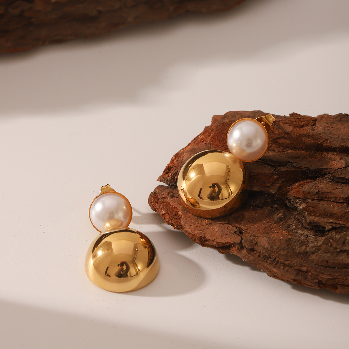 Cruach dhosmálta Buail Earring, 304 Cruach dhosmálta, le Pearl Plaisteacha, Babhta, 18K ór plátáilte, jewelry faisin & do bhean, Díolta De réir Péire