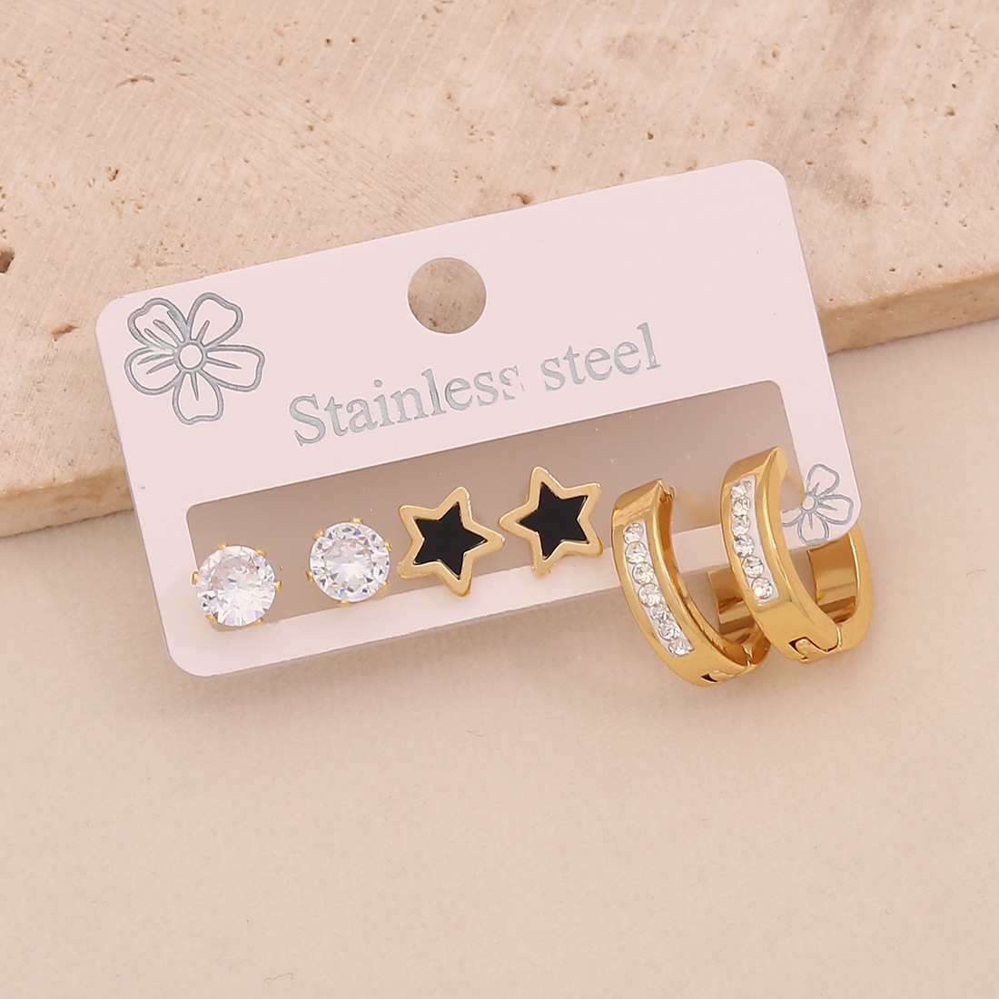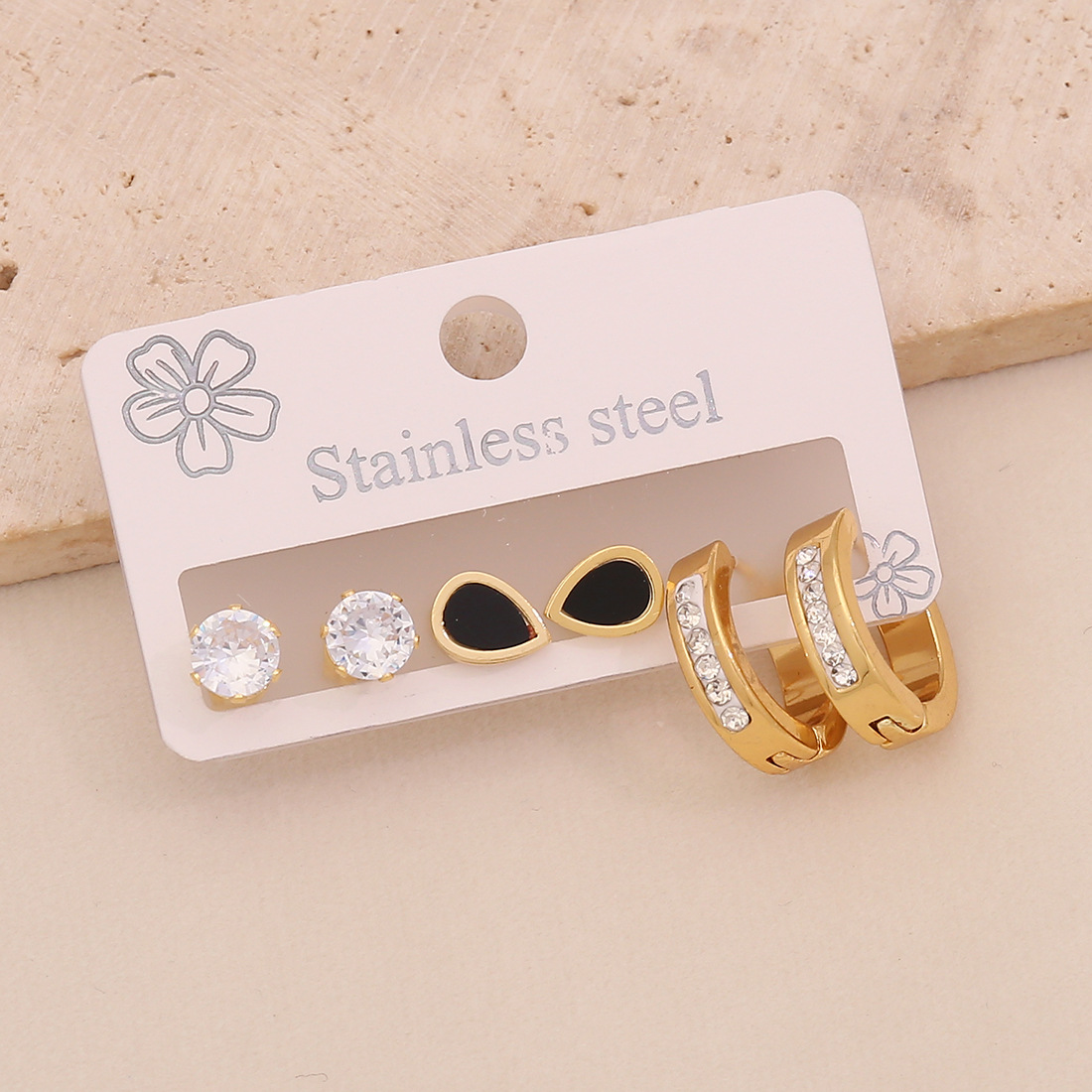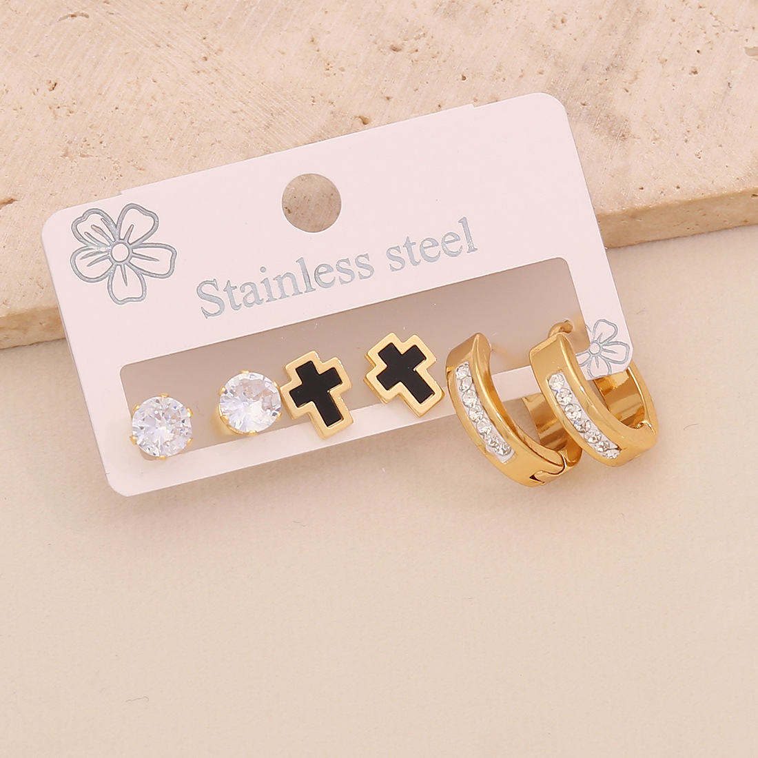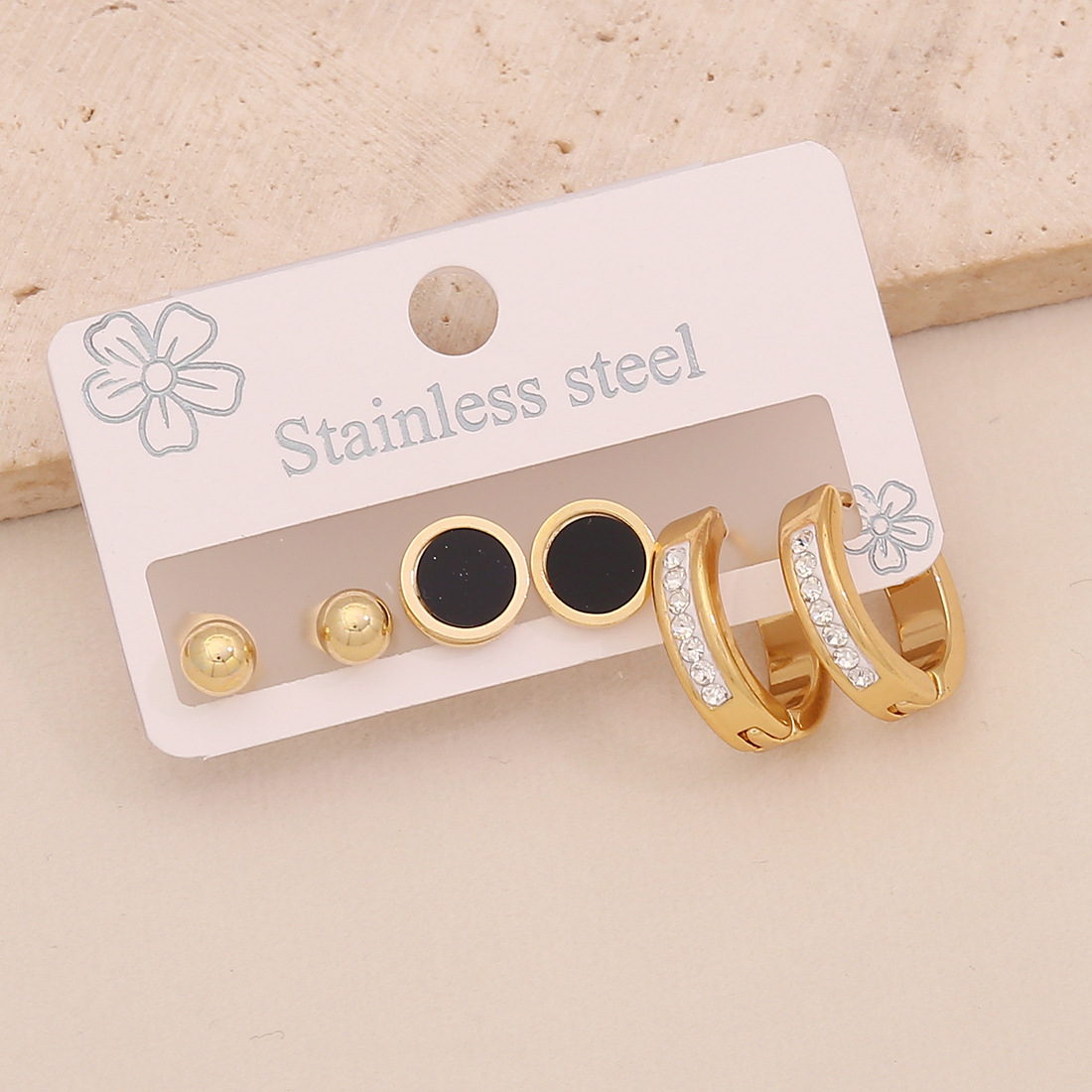 Cruach dhosmálta Buail Earring, 304 Cruach dhosmálta, plátáilte, trí phíosa & stíleanna éagsúla do rogha & do bhean & cruan & le rhinestone, órga, Díolta De réir Socraigh