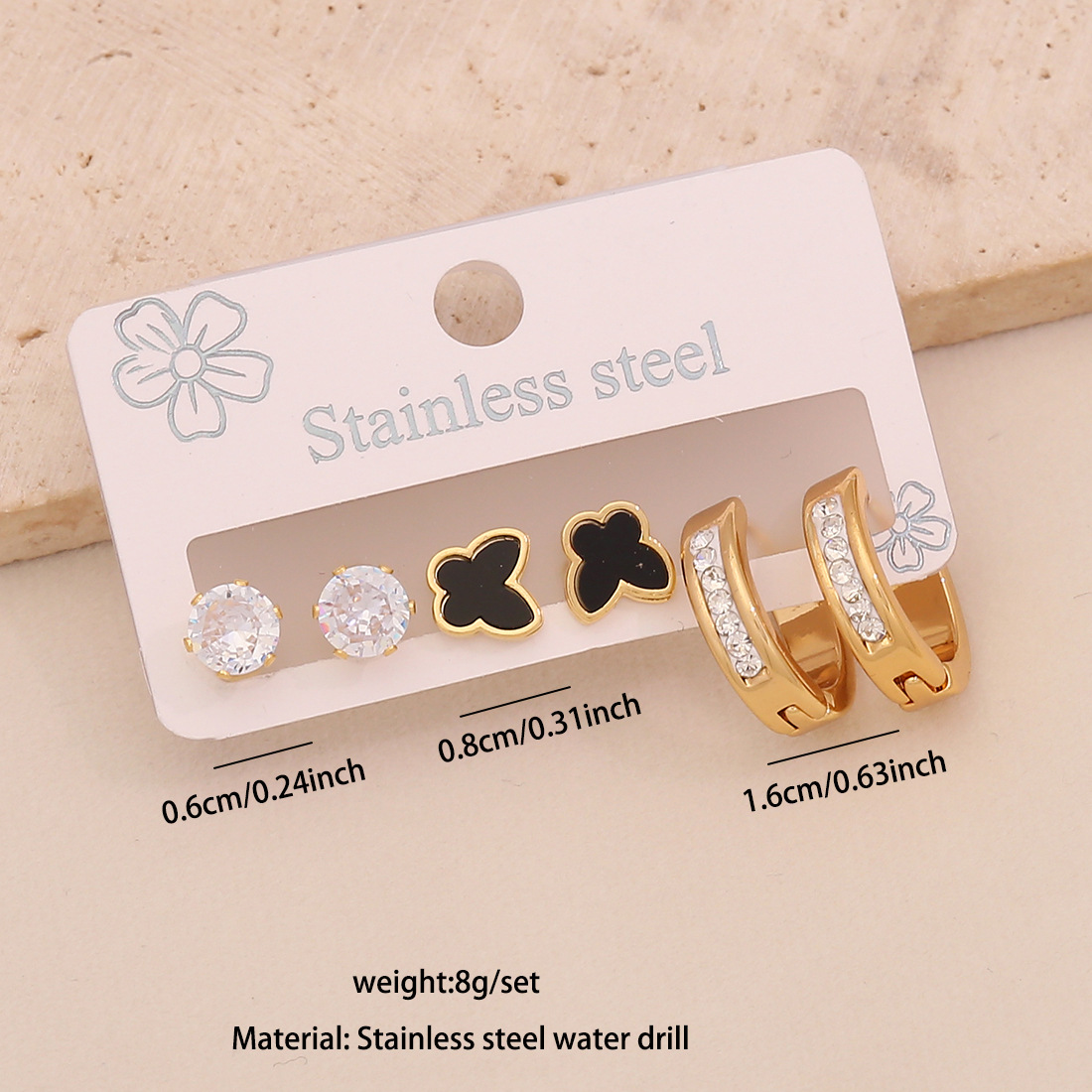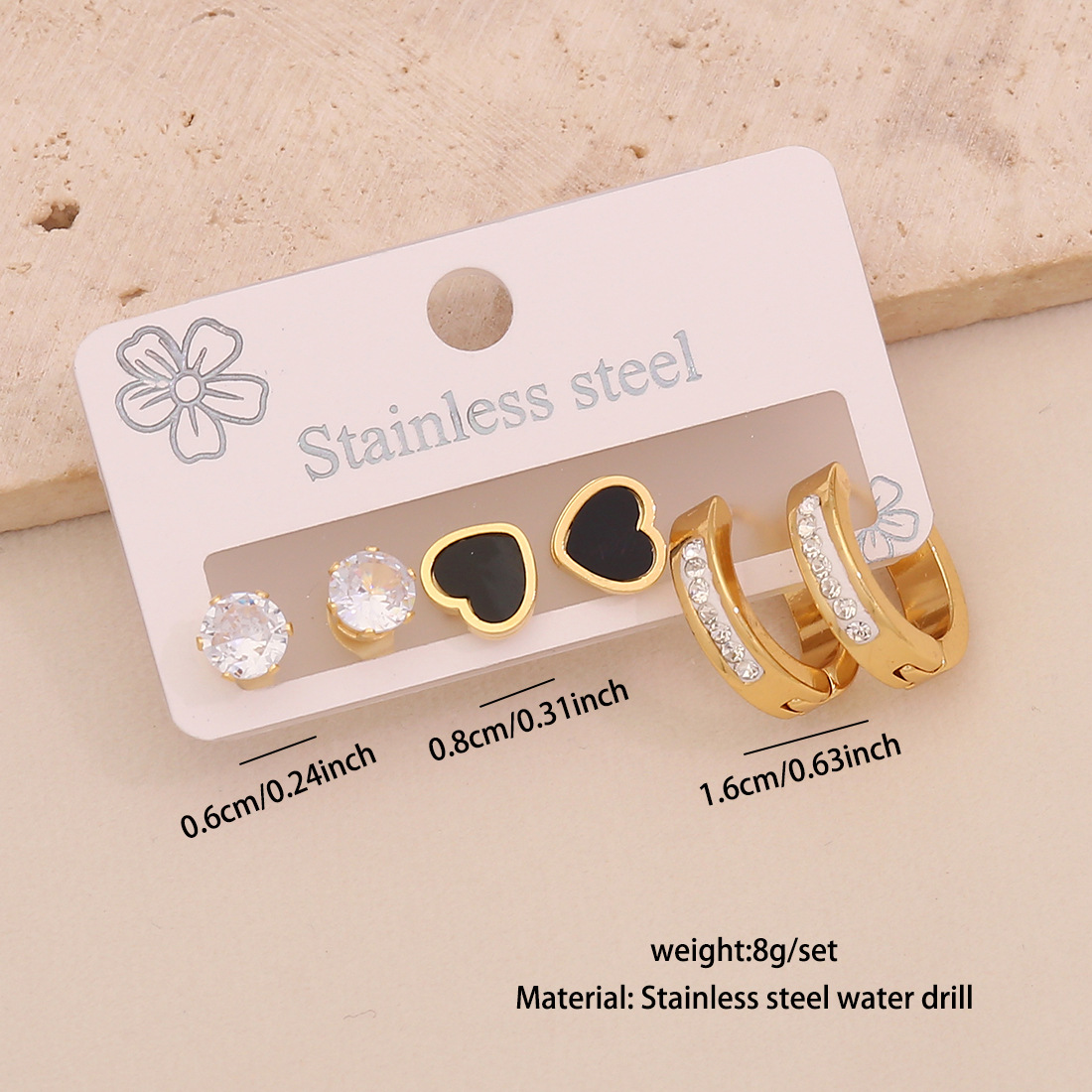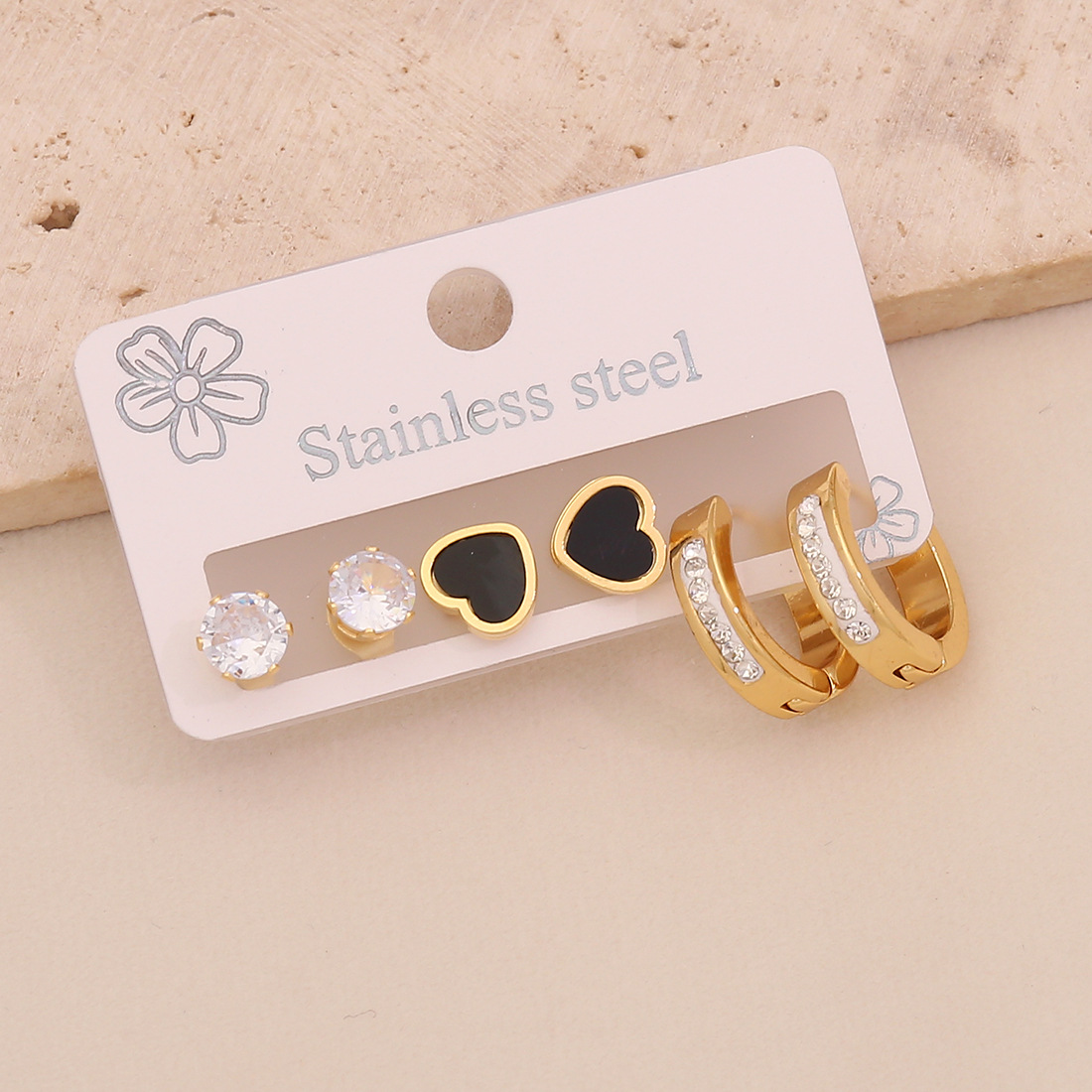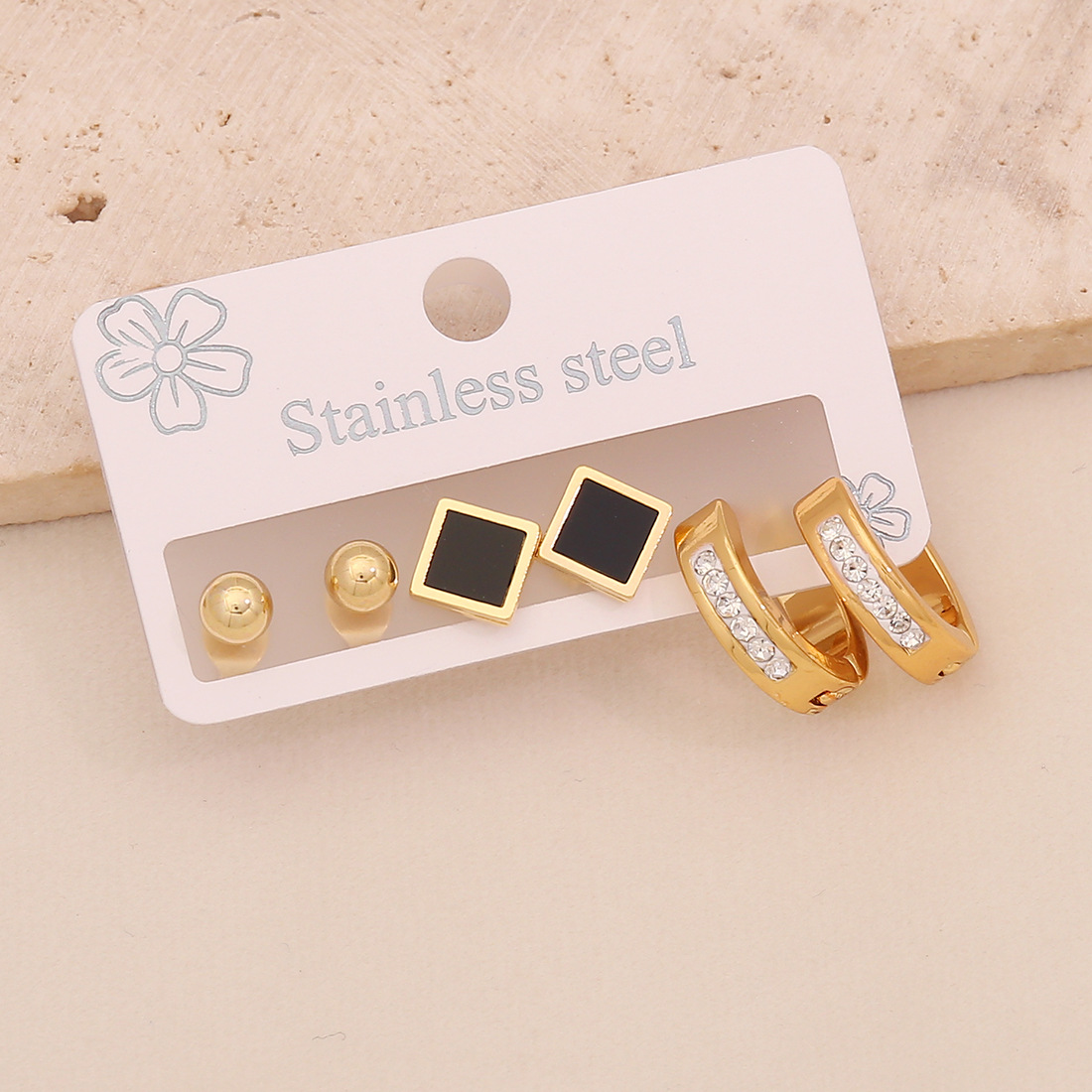 Cruach dhosmálta Buail Earring, 304 Cruach dhosmálta, plátáilte, trí phíosa & stíleanna éagsúla do rogha & do bhean & cruan & le rhinestone, órga, Díolta De réir Socraigh