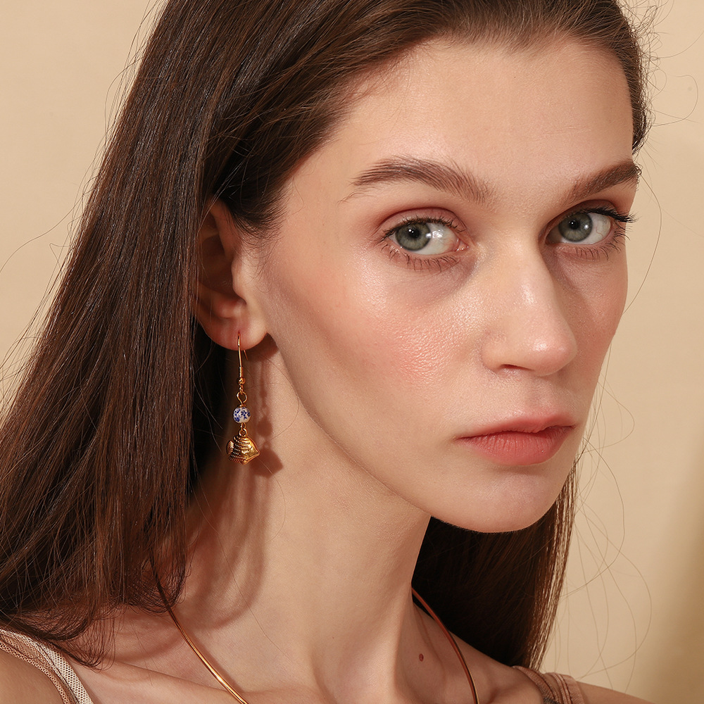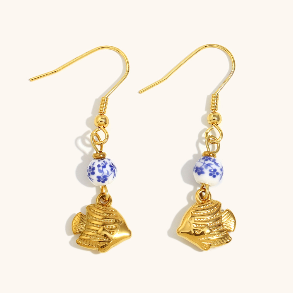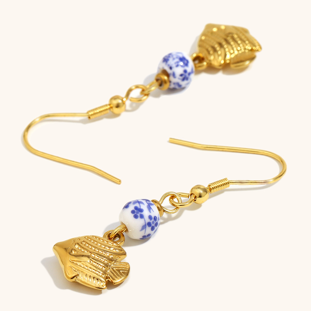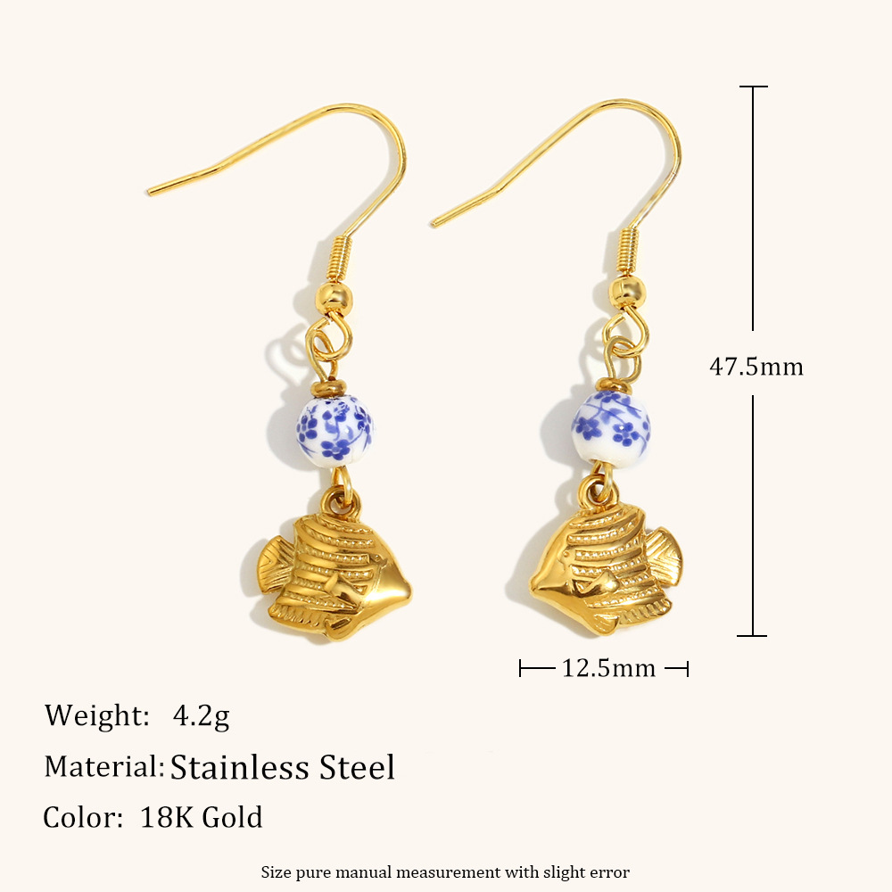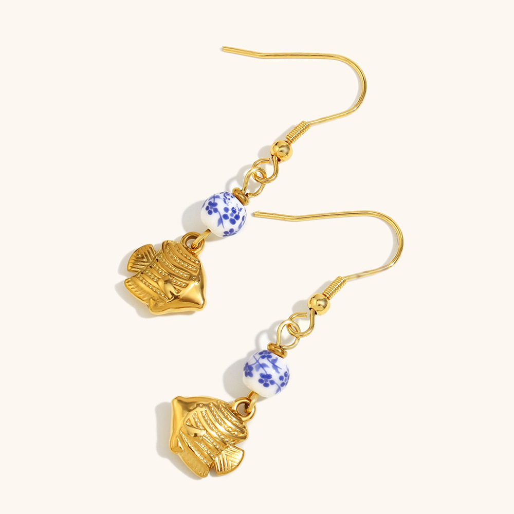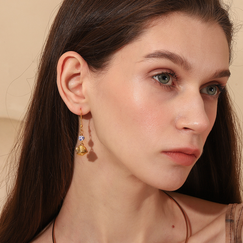 Cruach dhosmálta Buail Earring, 304 Cruach dhosmálta, le Shell, Éisc, dath an óir plated, do bhean, Díolta De réir Péire