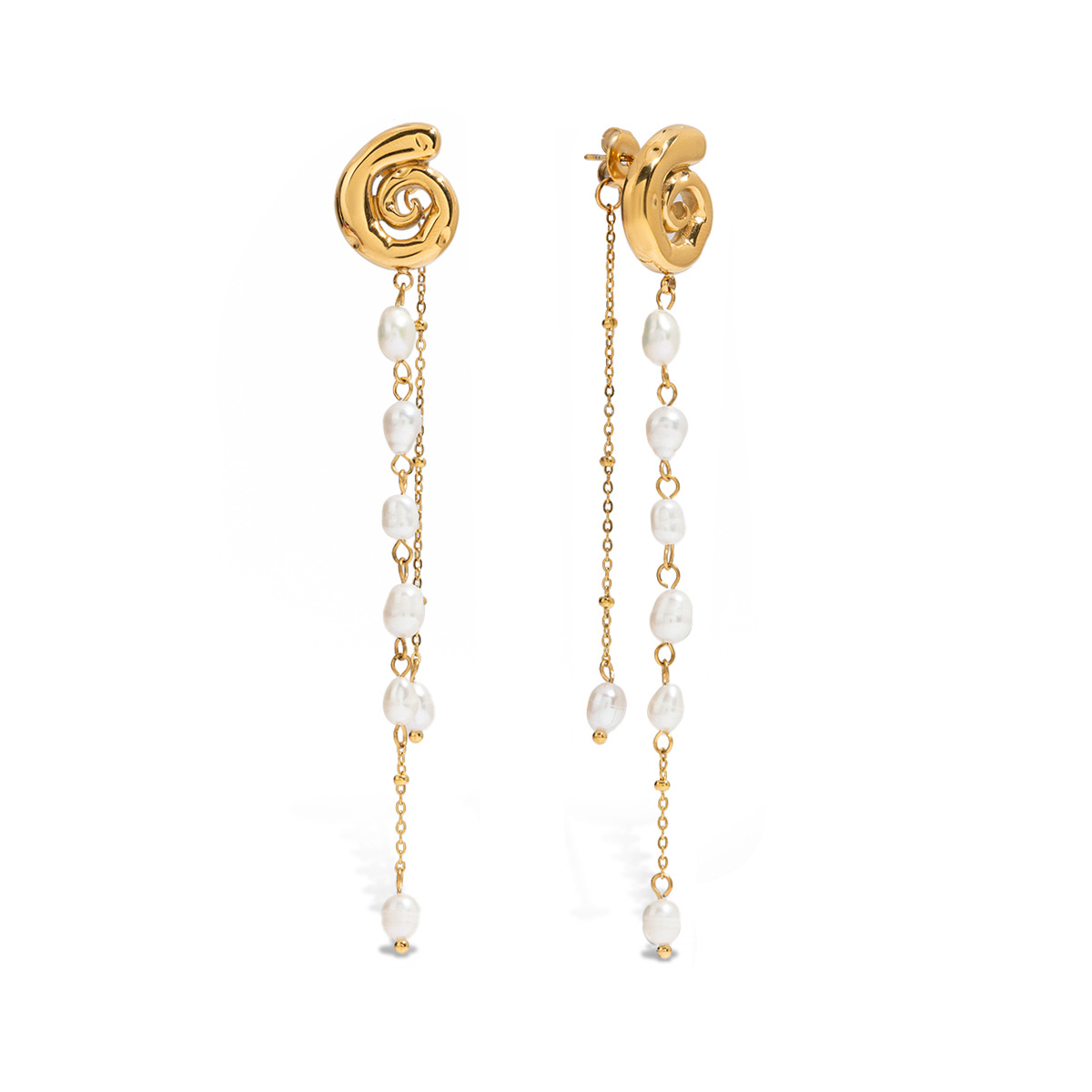 Cruach dhosmálta Buail Earring, 304 Cruach dhosmálta, le Cloch Nádúrtha & Pearl Plaisteacha, dath an óir plated, do bhean, Díolta De réir Péire