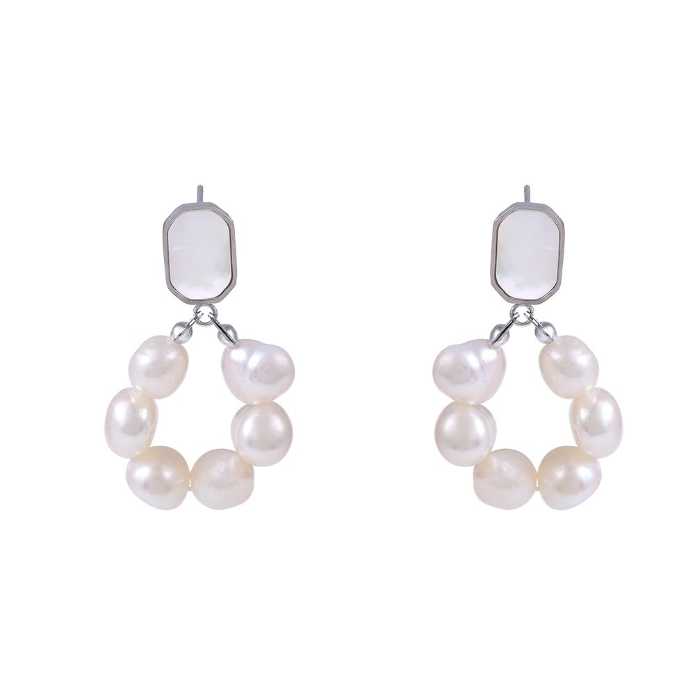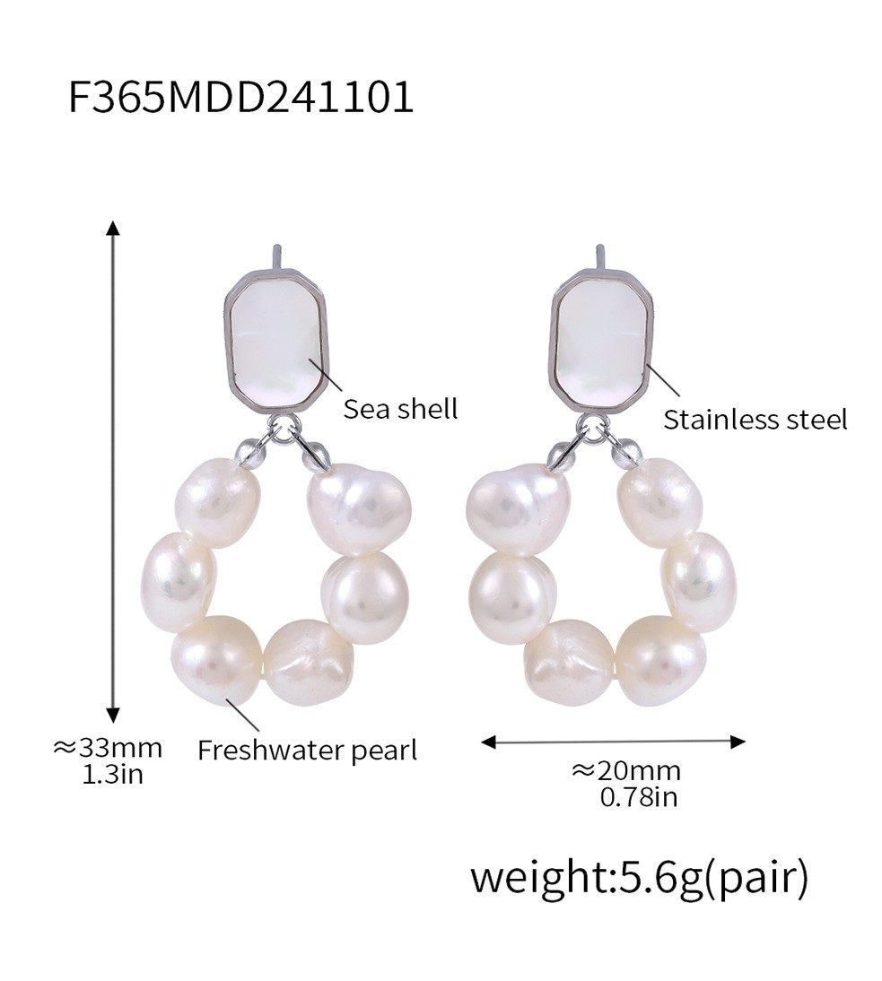 Cruach dhosmálta Buail Earring, 304 Cruach dhosmálta, le Shell & Pearl Fionnuisce, plátáilte, jewelry faisin & do bhean, Díolta De réir PC