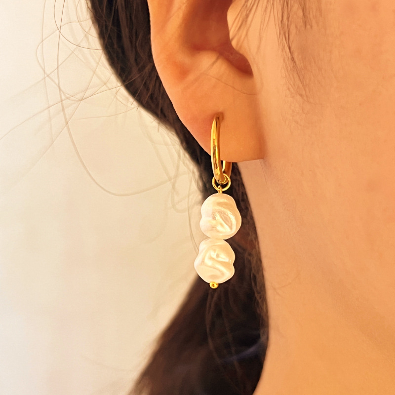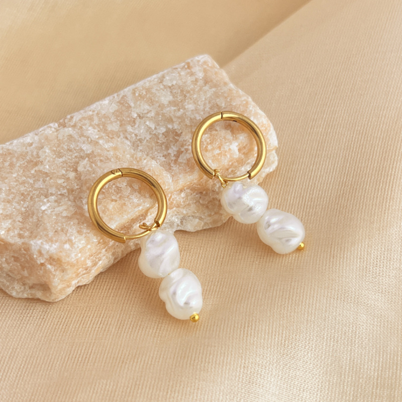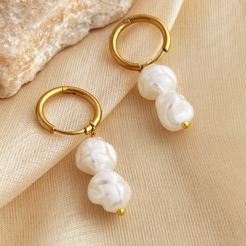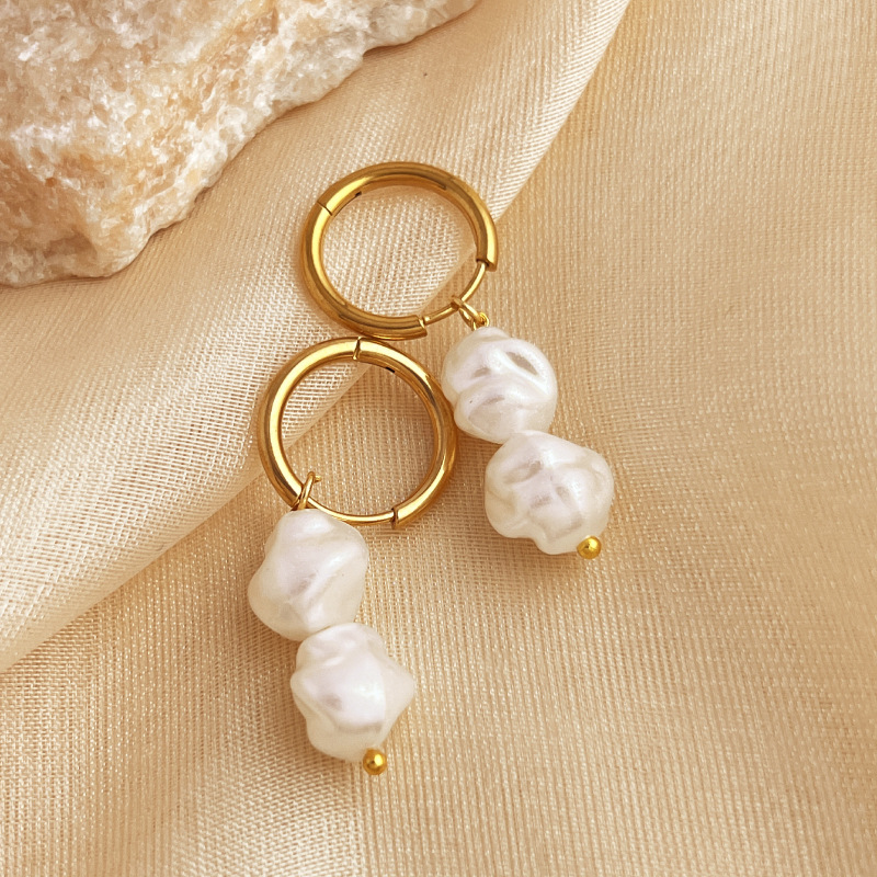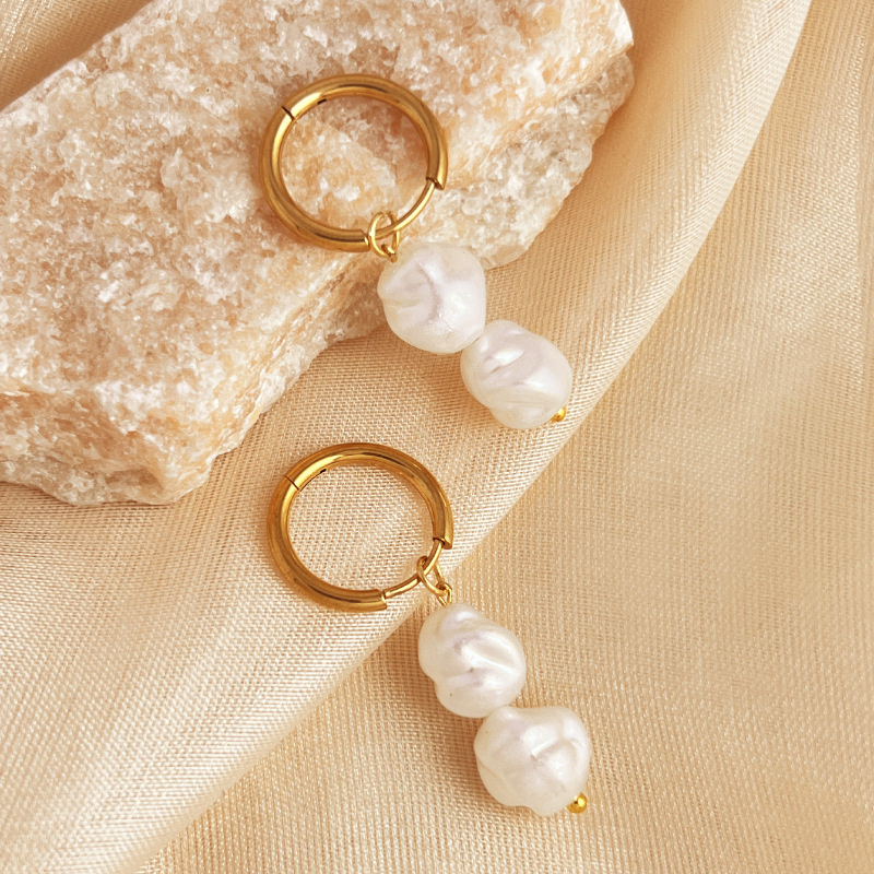Cruach dhosmálta Buail Earring, 304 Cruach dhosmálta, le Cloch Nádúrtha & Pearl Plaisteacha, dath an óir plated, do bhean, Díolta De réir Péire