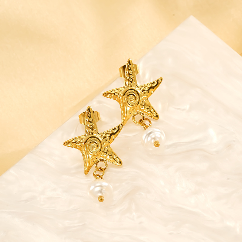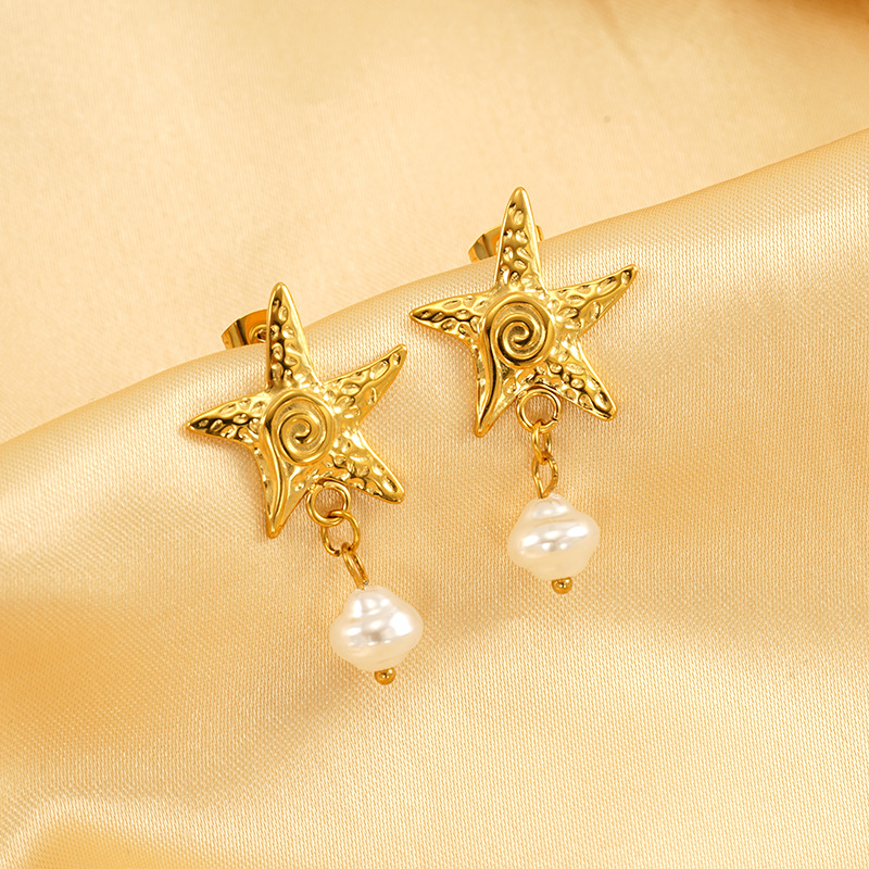 Cruach dhosmálta Buail Earring, 304 Cruach dhosmálta, le Cloch Nádúrtha & Pearl Plaisteacha, dath an óir plated, do bhean, Díolta De réir Péire