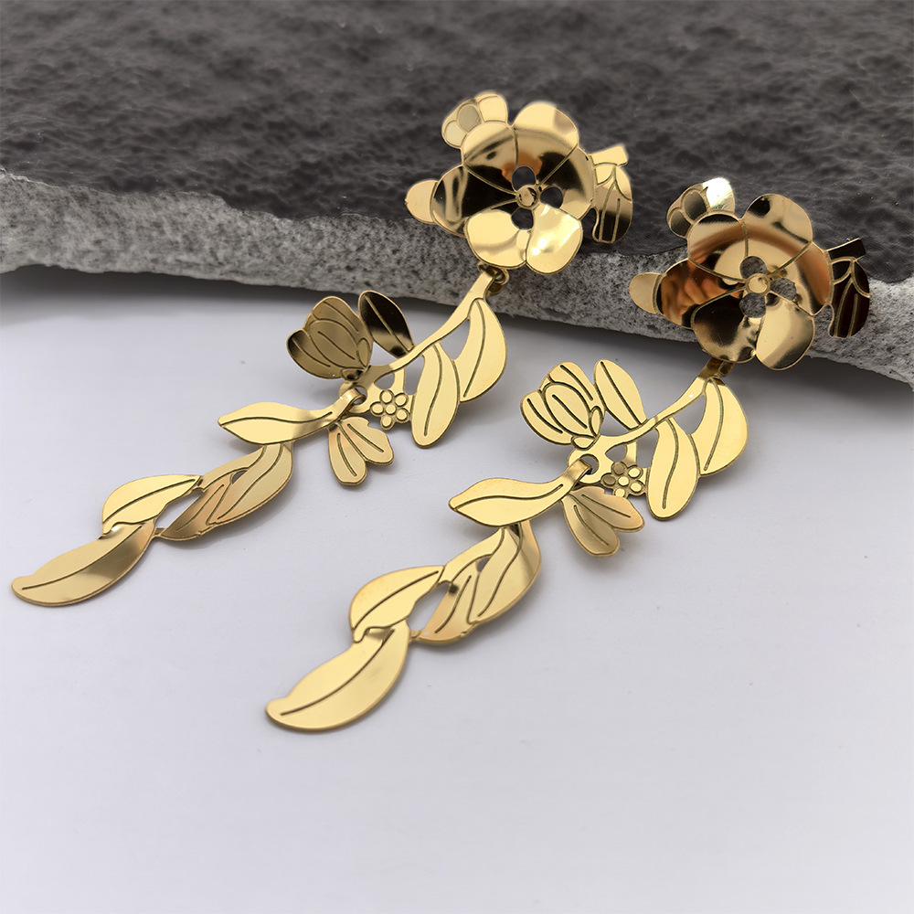 Cruach dhosmálta Buail Earring, 304 Cruach dhosmálta, Flower, 18K óir plated, jewelry faisin & do bhean & log, Díolta De réir Péire