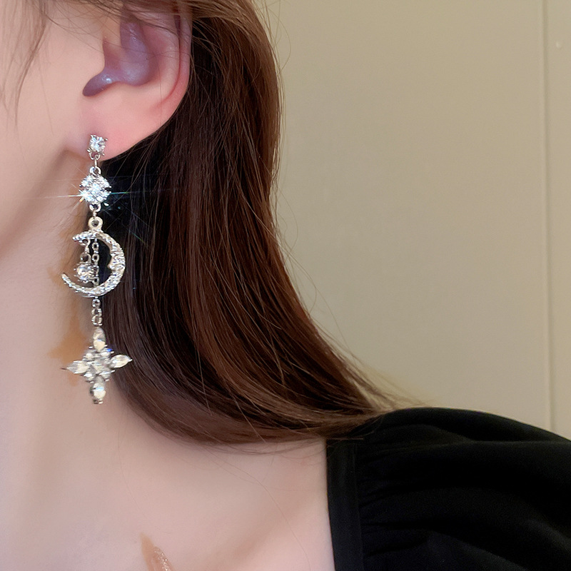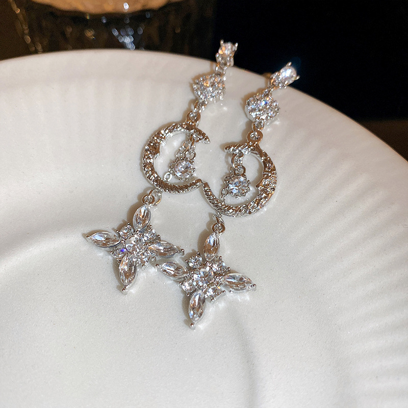 Cluas Rhinestone, Sinc Alloy, Moon agus Star, jewelry faisin & do bhean & le rhinestone, airgid, 65x20mm, Díolta De réir Péire