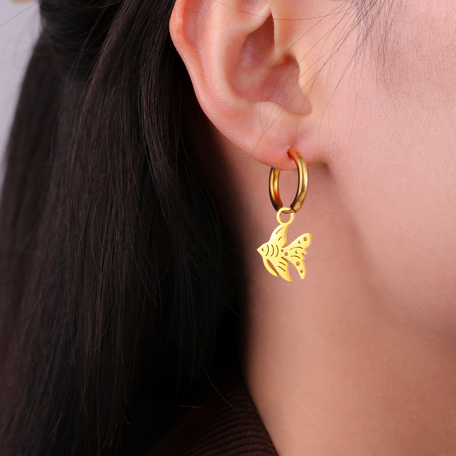 Earring Buail Huggie, 304 Cruach dhosmálta, do bhean, dathanna níos mó le haghaidh rogha, 10Péirí/Mála, Díolta De réir Mála