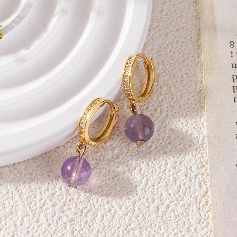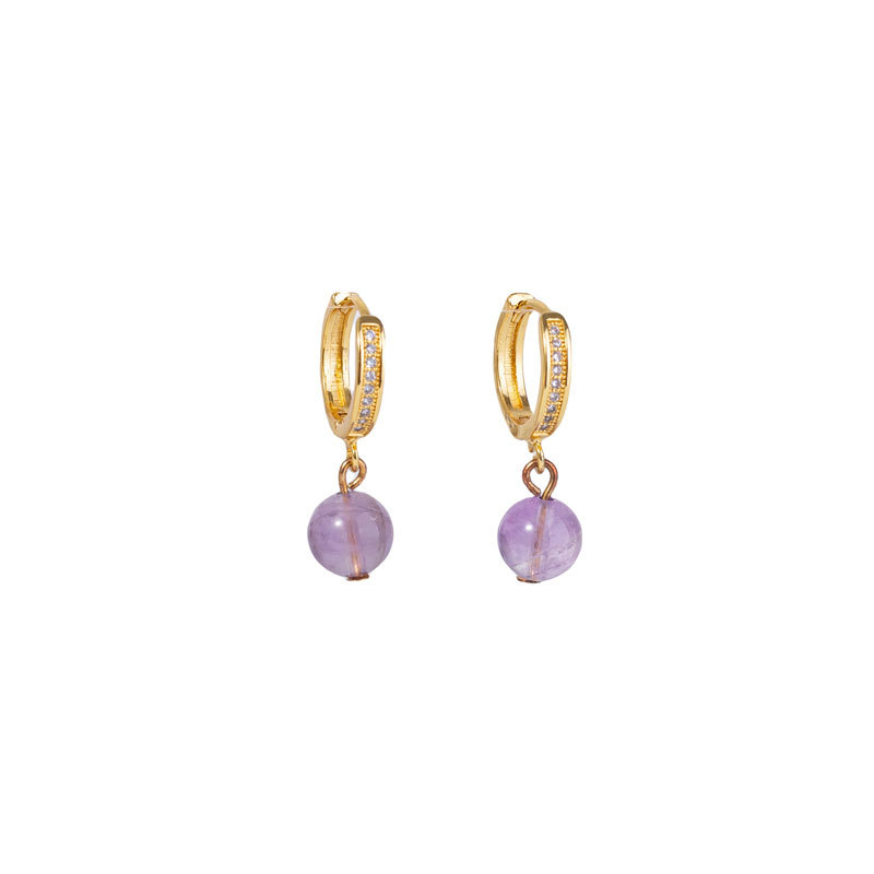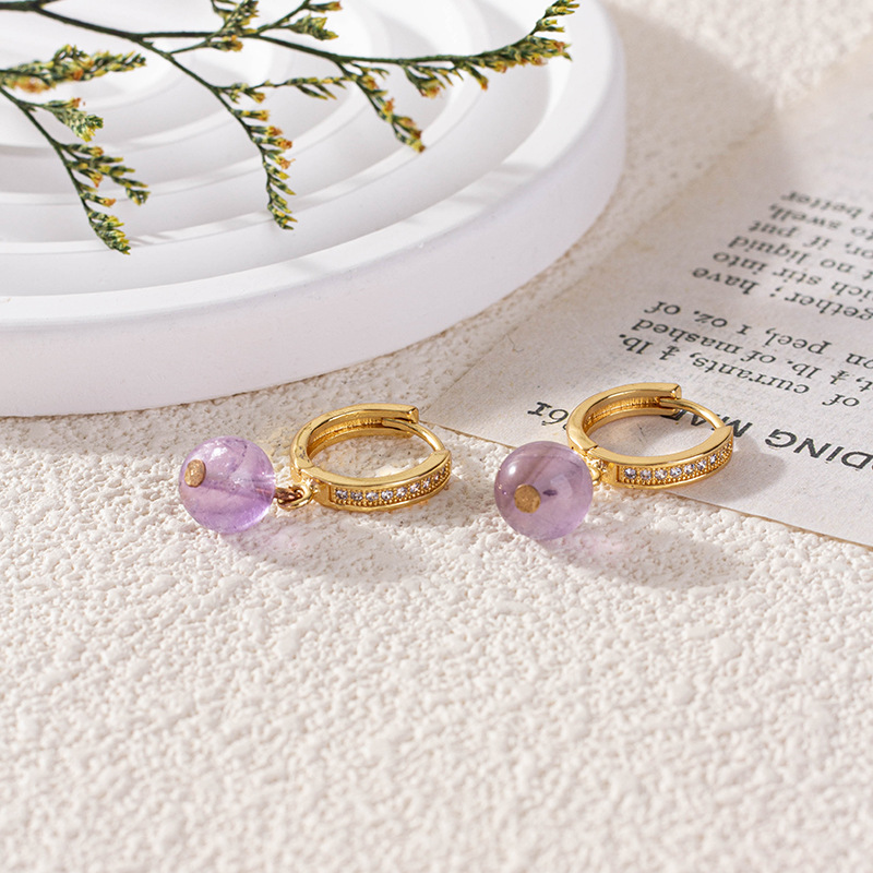 Nádúrtha Grianchloch Earrings, Prás, le Aimitis, Babhta, dath an óir plated, micrea réiteach zirconia ciúbach & do bhean, corcra, nicil, luaidhe & caidmiam saor in aisce, 8mm, Díolta De réir Péire