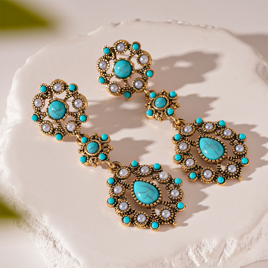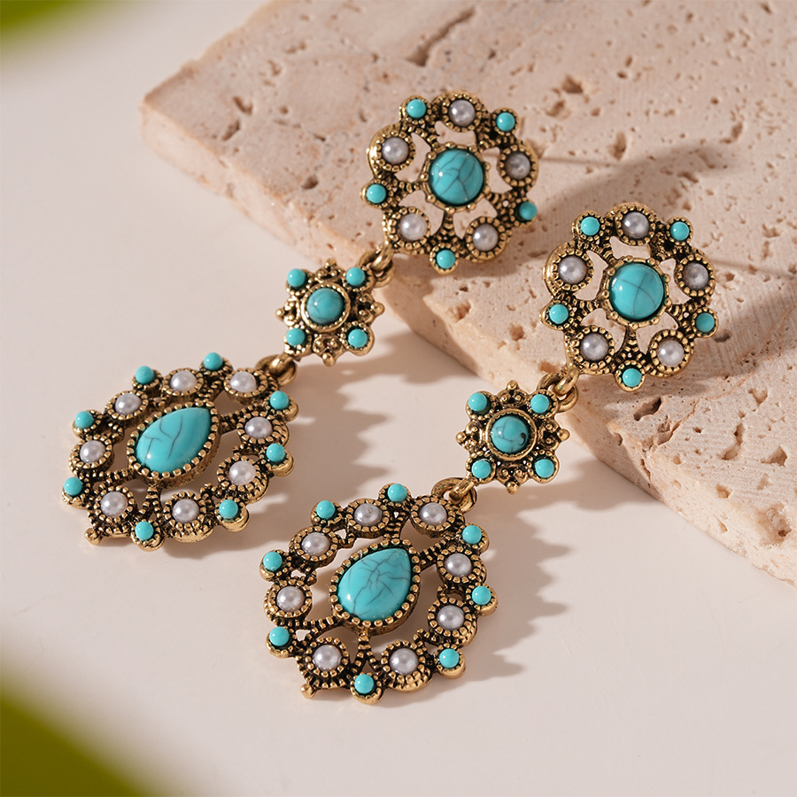 Sinc Alloy Earrings, le Turquoise sintéiseach & Pearl Plaisteacha, plátáilte, jewelry faisin & do bhean & log, 70x25mm, Díolta De réir Péire
