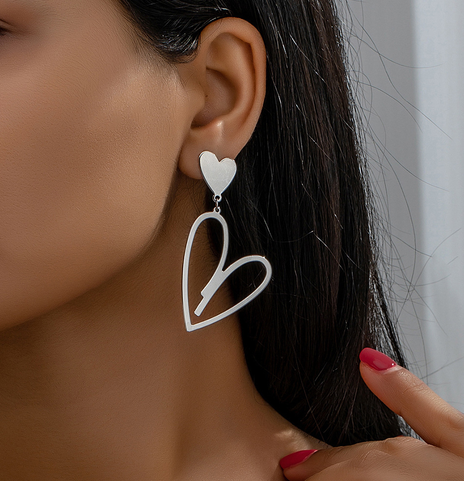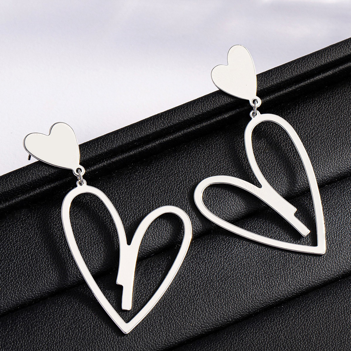 Sinc Alloy Earrings, Croí, jewelry faisin & do bhean & log, airgid, 60mm, Díolta De réir Péire