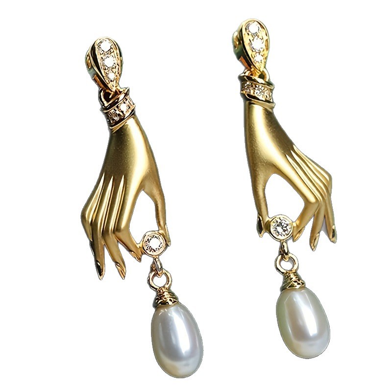 Sinc Alloy Earrings, le Pearl Plaisteacha, Hand, plátáilte, micrea réiteach zirconia ciúbach & do bhean & log, órga, Díolta De réir Péire