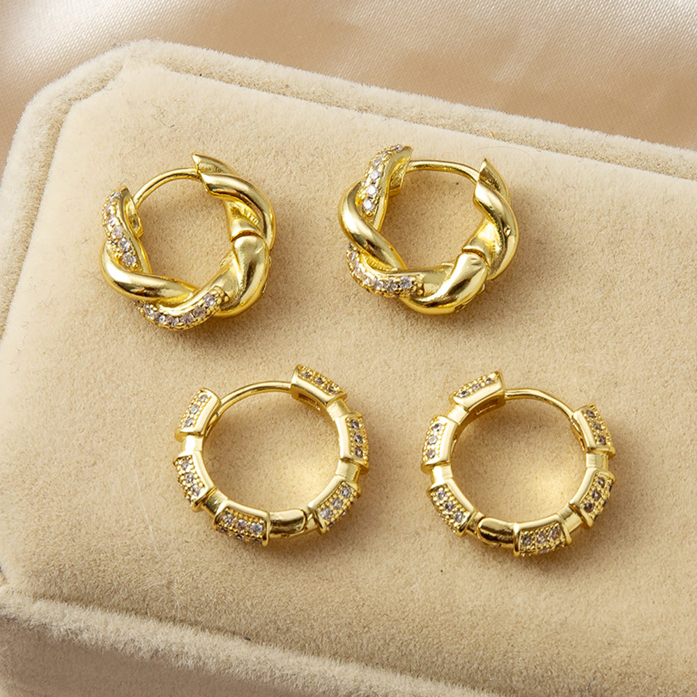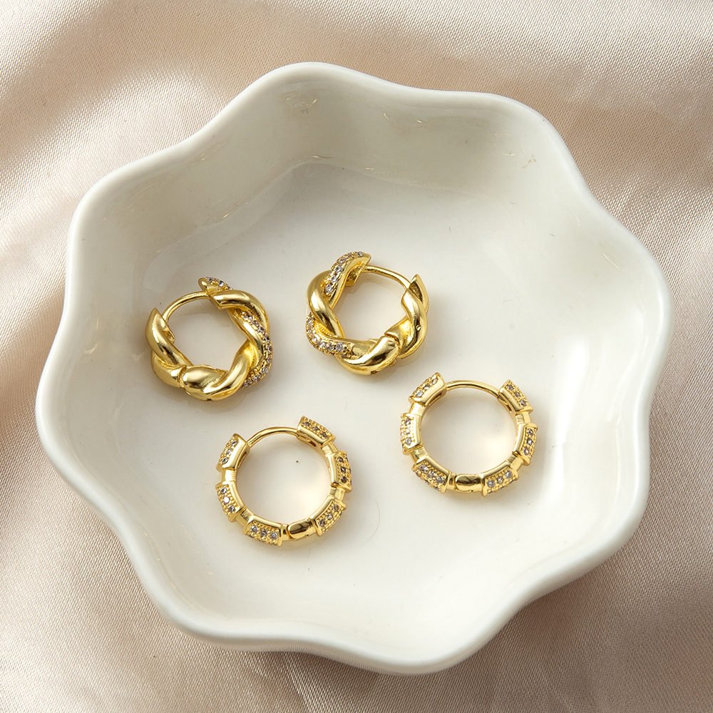 Ciúbach Zirconia Micrimhilseogra réiteodh Earring Prás, plátáilte, trí phíosa & do bhean, órga, Díolta De réir Socraigh