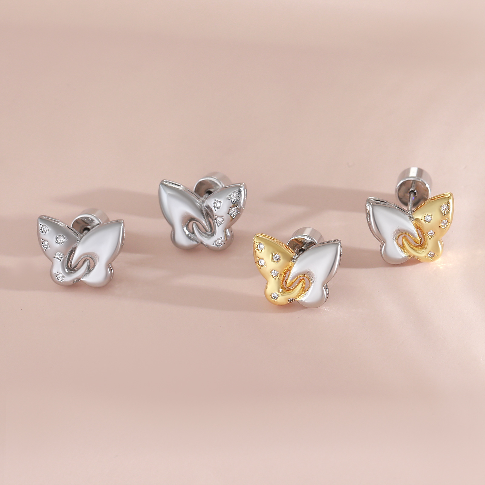 Ciúbach Zirconia Micrimhilseogra réiteodh Earring Prás, Féileacán, plátáilte, jewelry faisin & micrea réiteach zirconia ciúbach & do bhean, dathanna níos mó le haghaidh rogha, Díolta De réir Péire