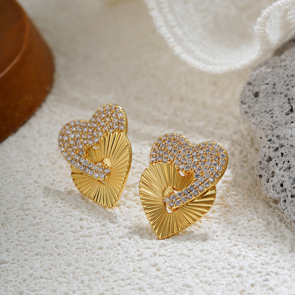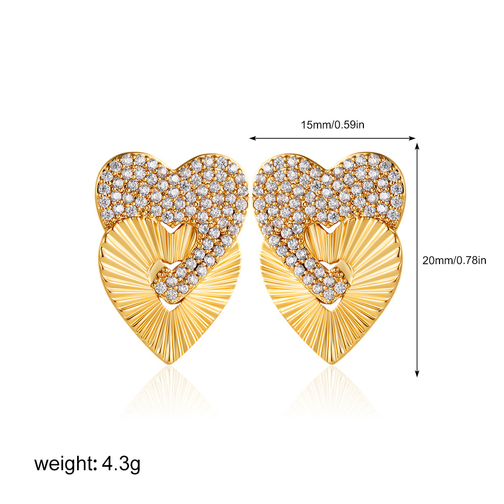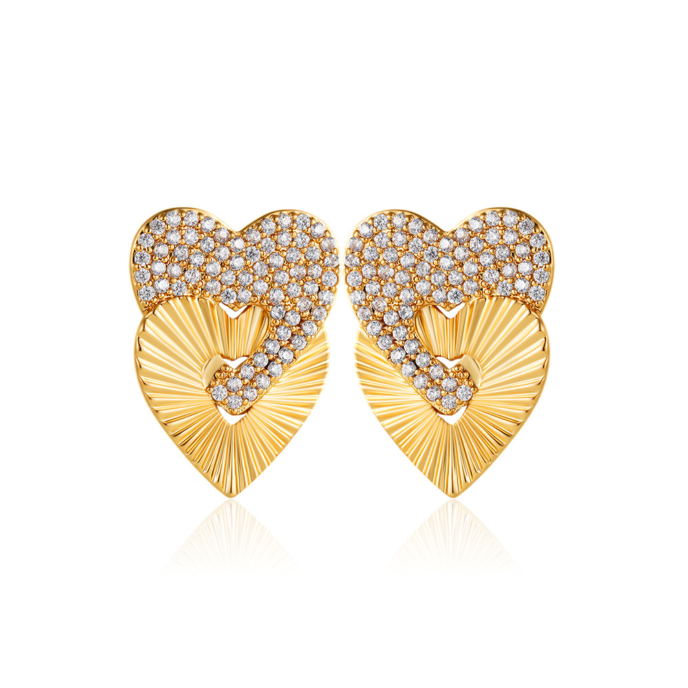 Ciúbach Zirconia Micrimhilseogra réiteodh Earring Prás, Croí, 18K ór plátáilte, Ciseal Dúbailte & micrea réiteach zirconia ciúbach & do bhean, Díolta De réir Péire