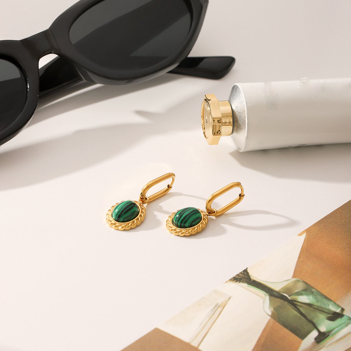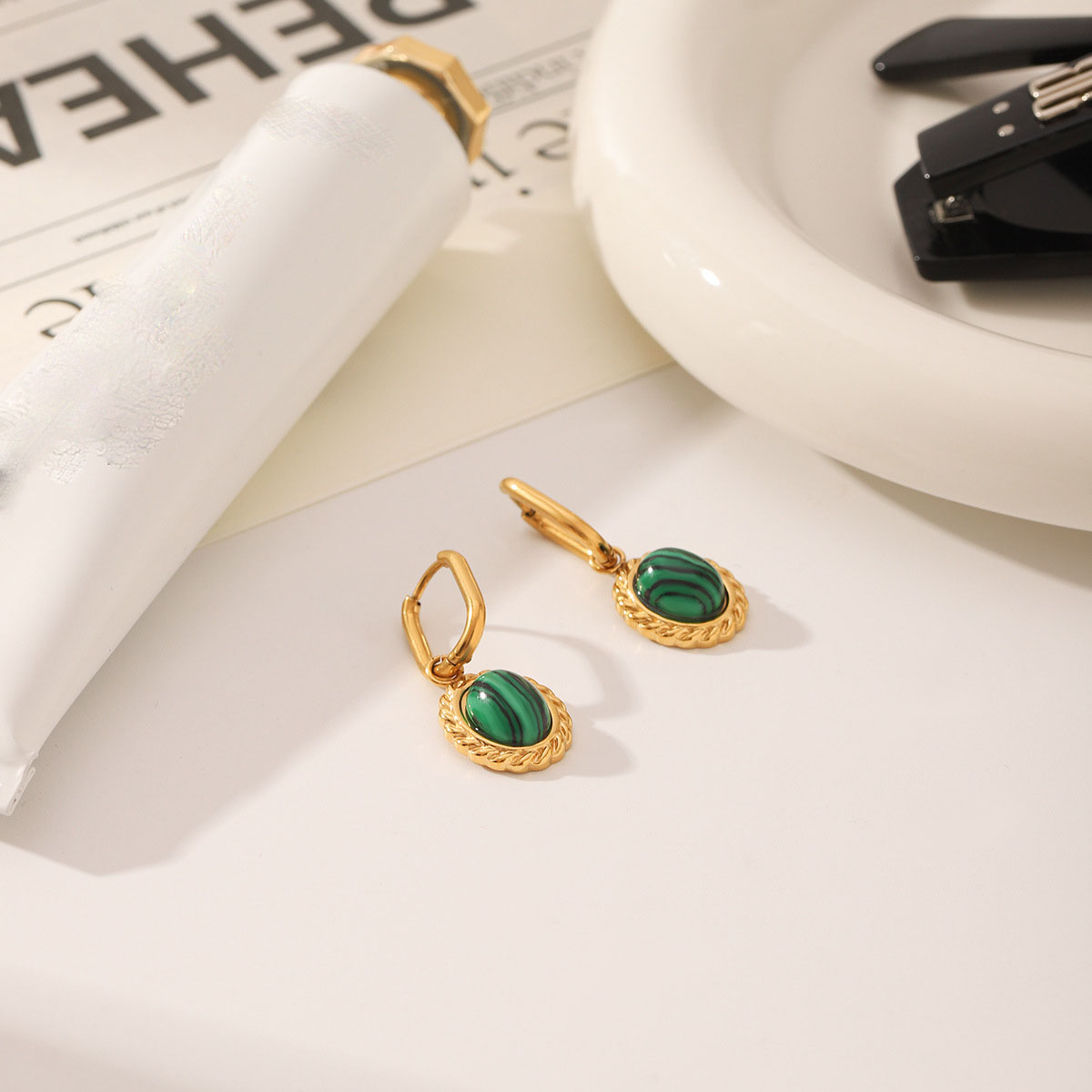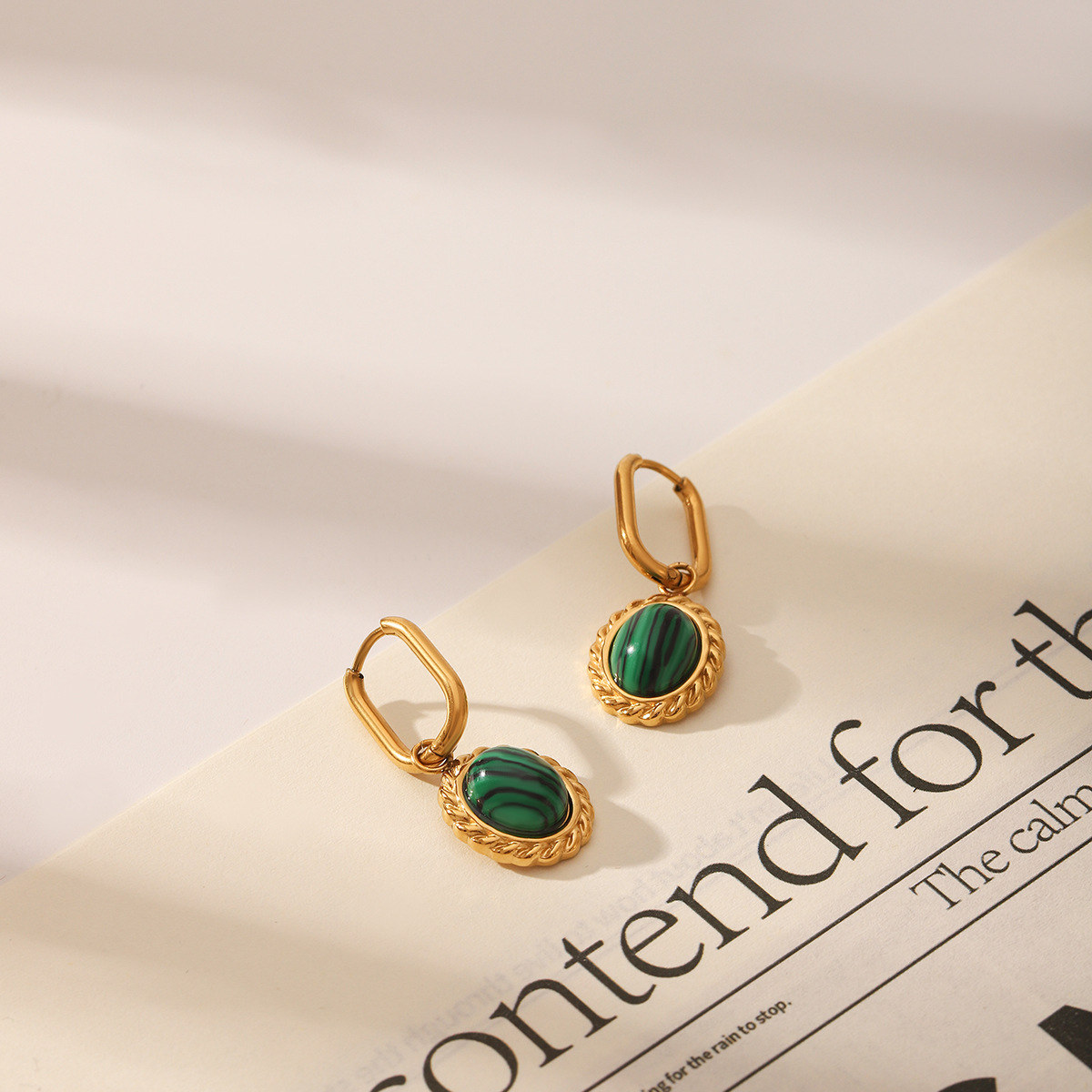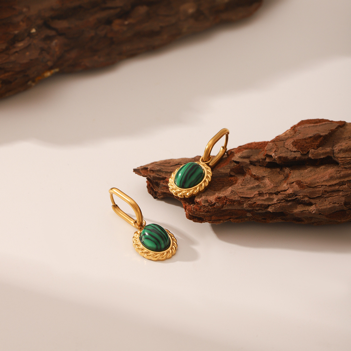 Earrings Gemstone, 304 Cruach dhosmálta, le Malachite, jewelry faisin & do bhean, órga, Díolta De réir Péire