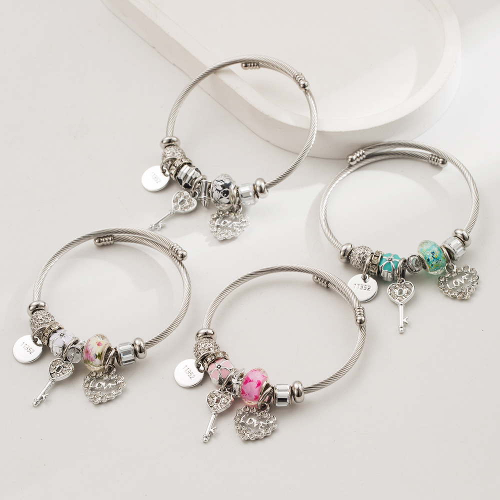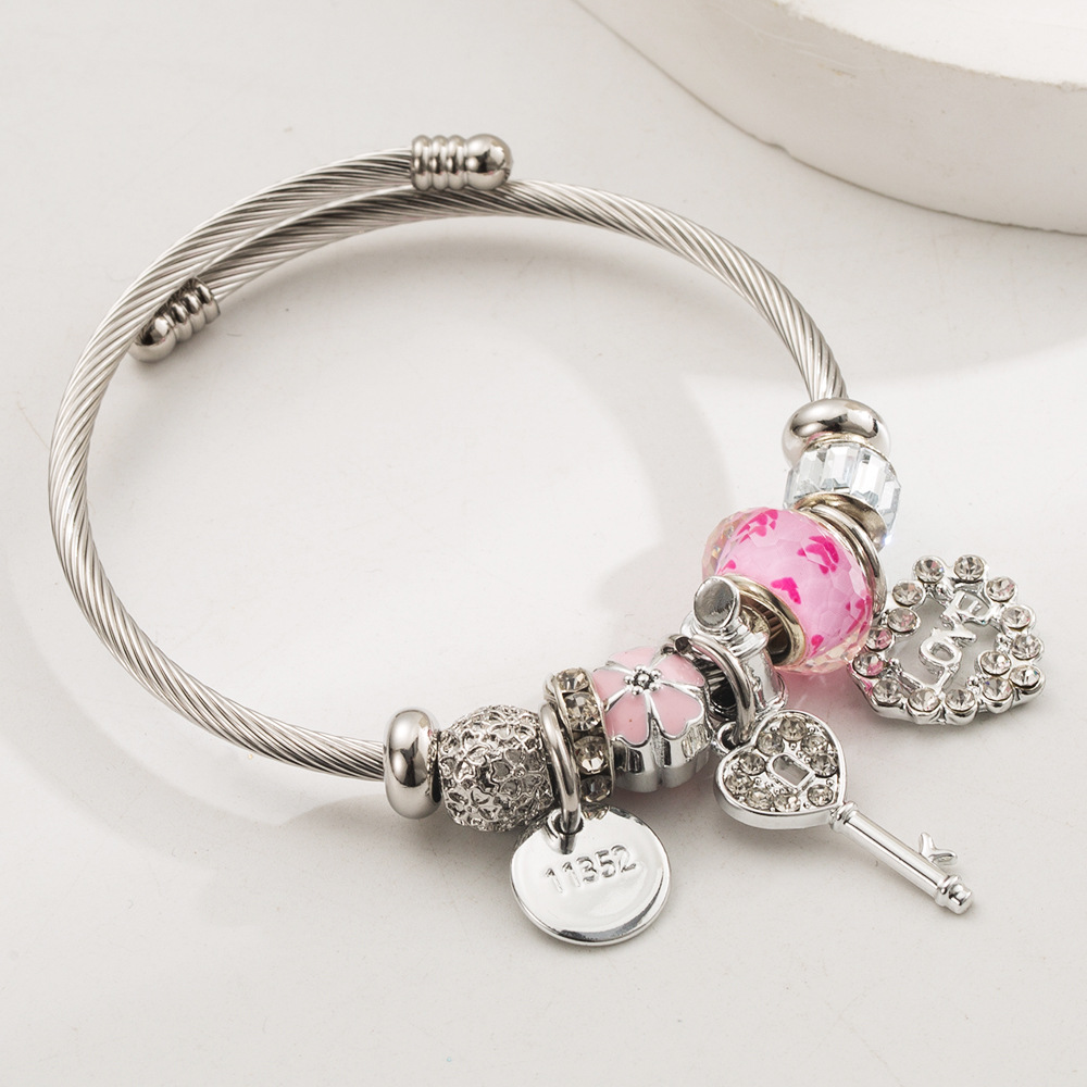 European Bracelet, 304 Cruach dhosmálta, le Sinc Alloy, dath airgid plated, jewelry faisin & le rhinestone, dathanna níos mó le haghaidh rogha, Díolta De réir PC