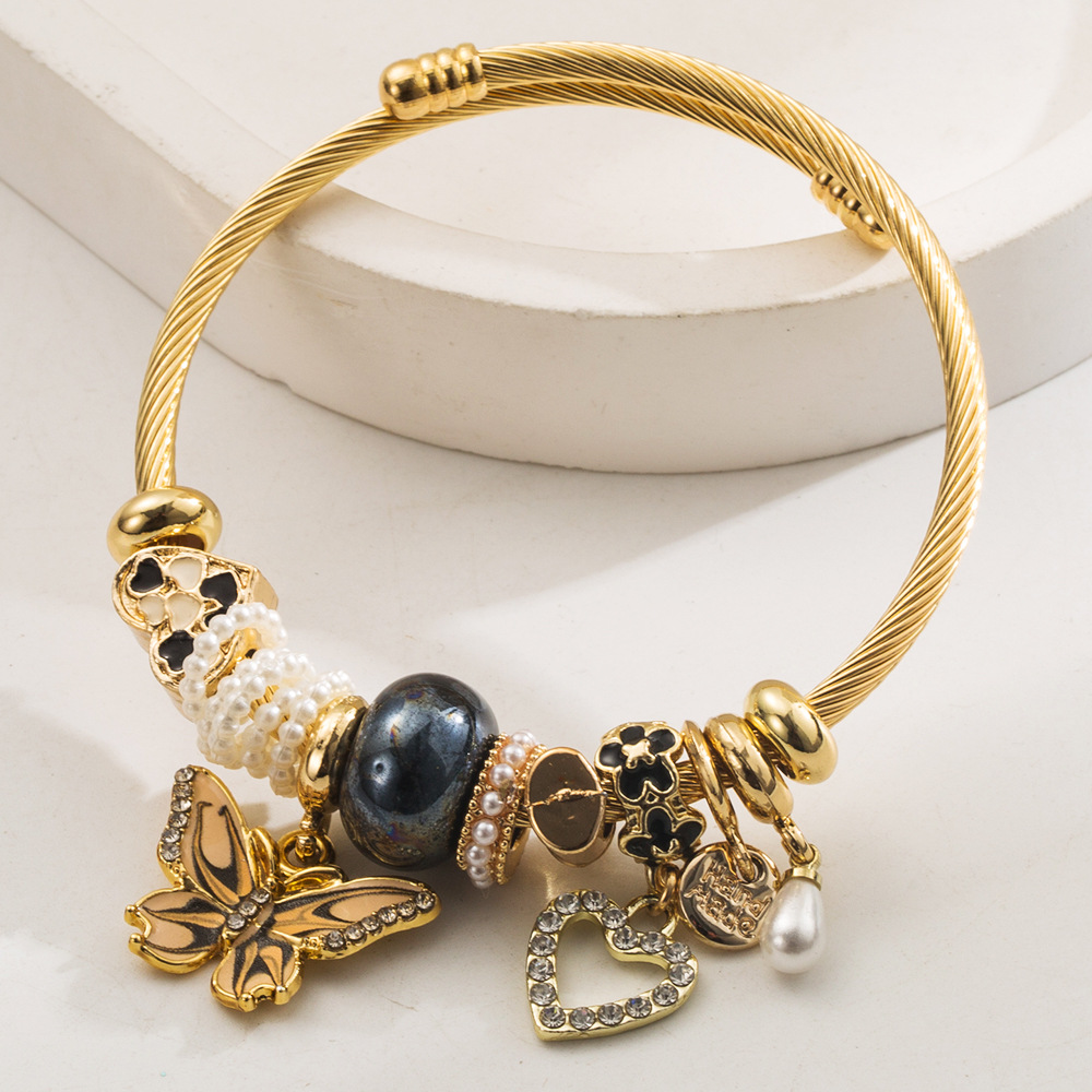 European Bracelet, Sinc Alloy, le Pearl Plaisteacha & 304 Cruach dhosmálta, dath an óir plated, jewelry faisin & cruan & le rhinestone, dathanna níos mó le haghaidh rogha, nicil, luaidhe & caidmiam saor in aisce, Díolta De réir PC