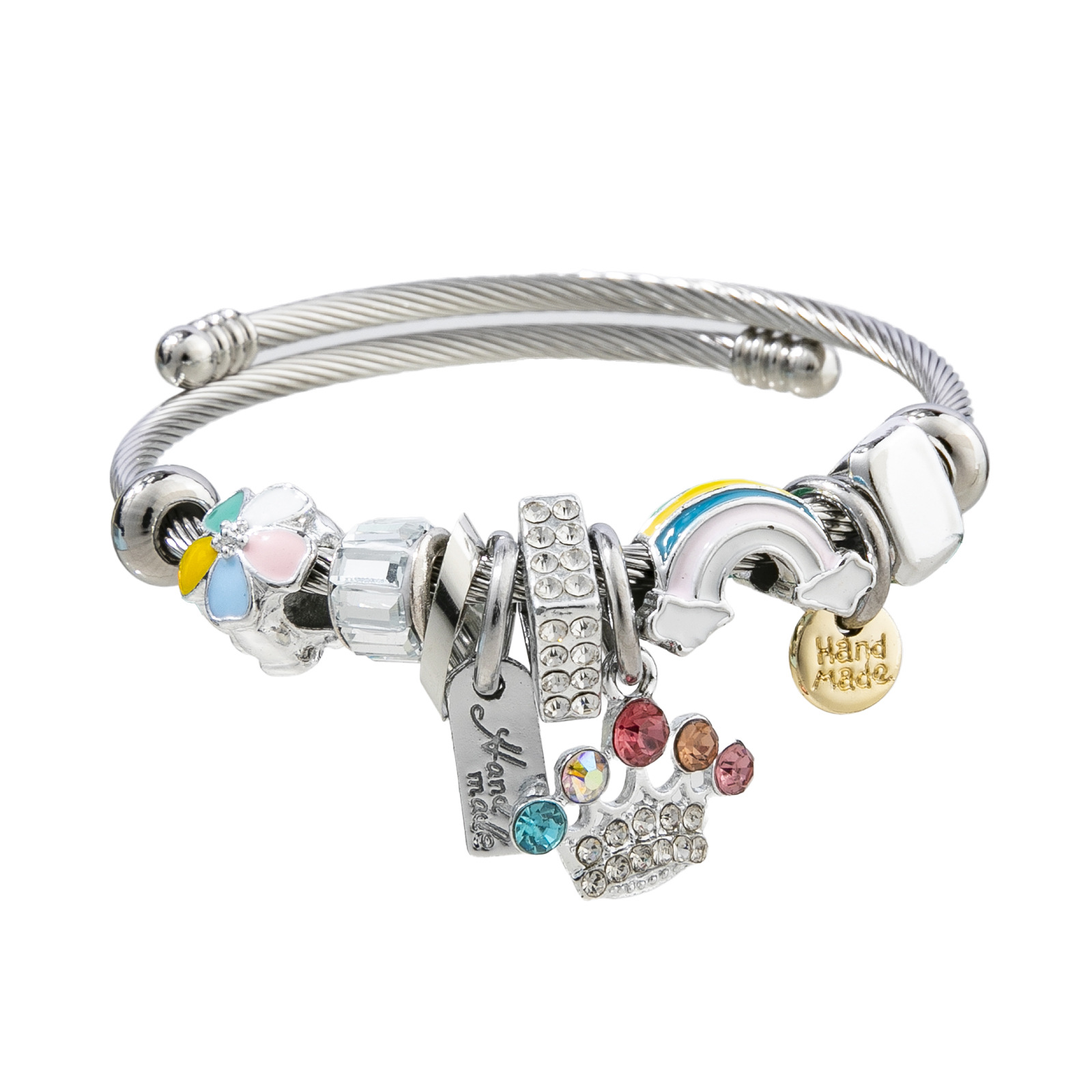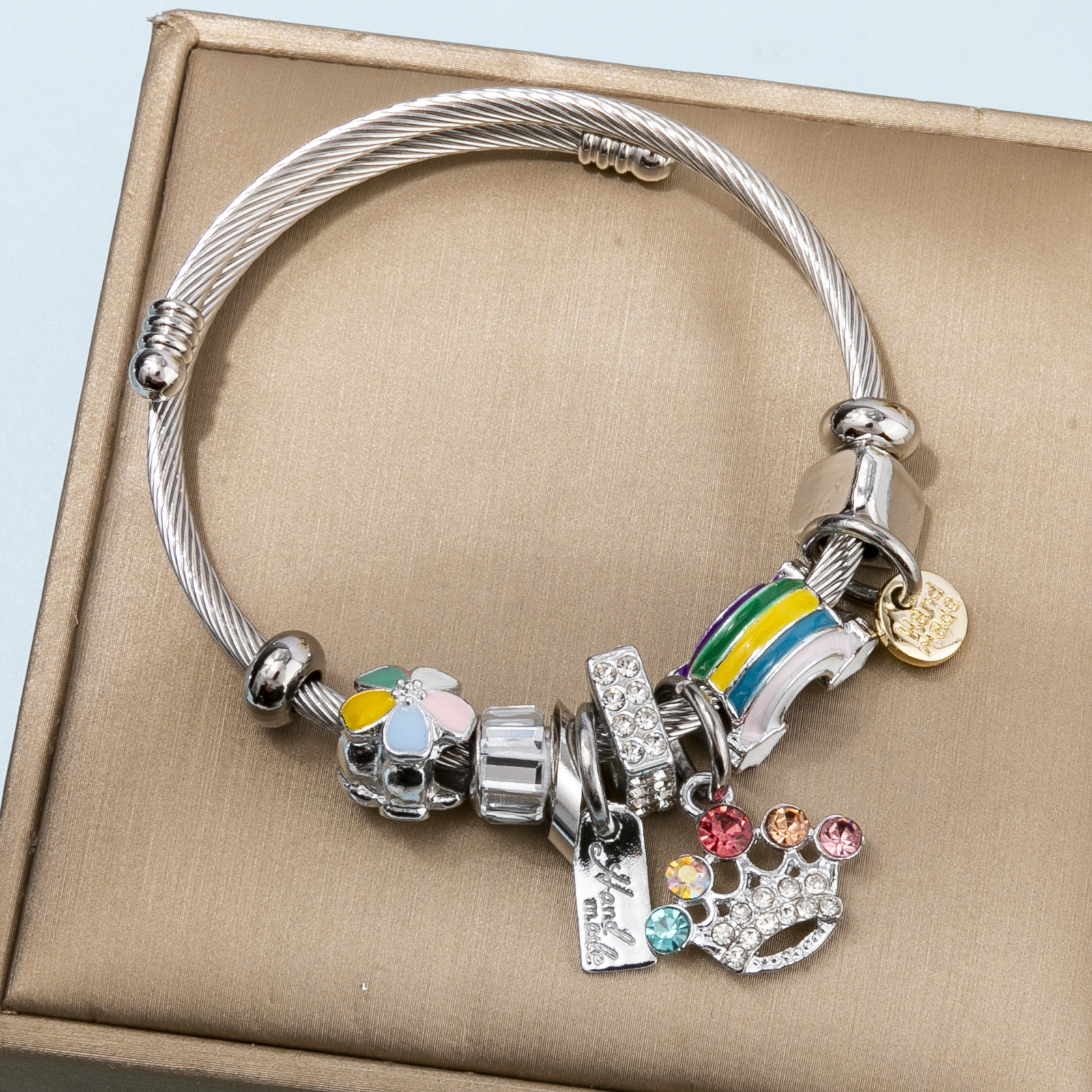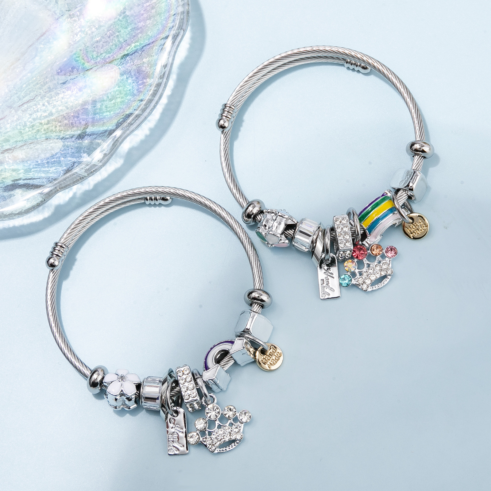 European Bracelet, 304 Cruach dhosmálta, le Sinc Alloy, Corónach, plátáilte, Inchoigeartaithe & jewelry faisin & do bhean & cruan & le rhinestone, dathanna níos mó le haghaidh rogha, diameter about:5.5cm, Díolta De réir PC