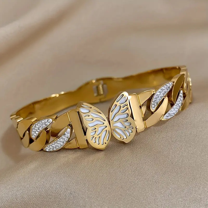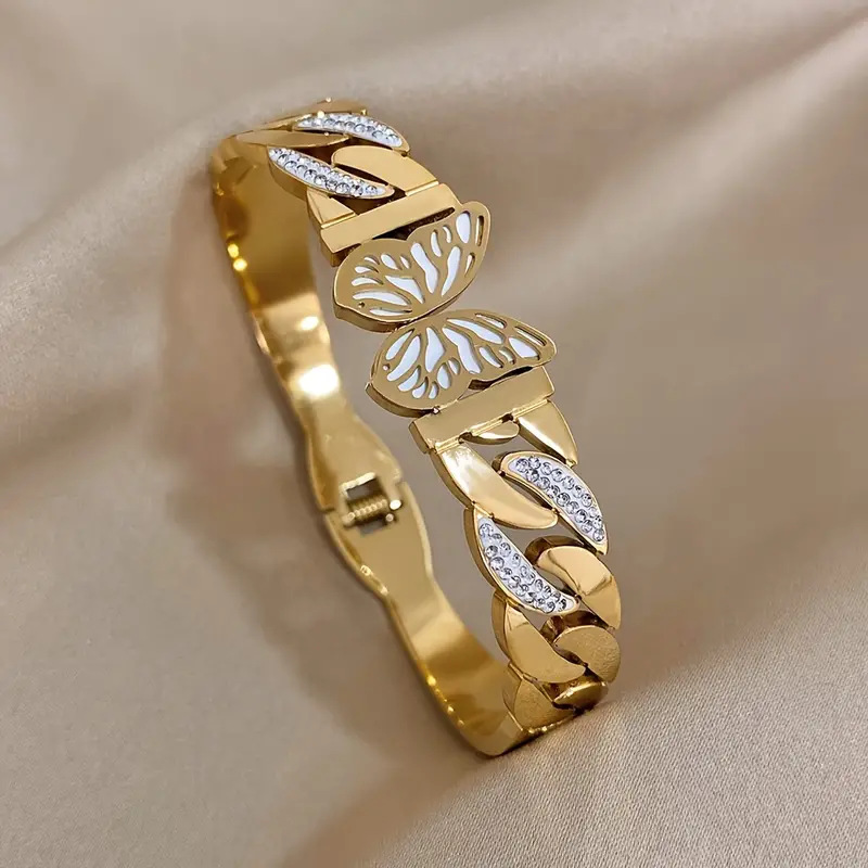 Cruach dhosmálta Bangle, 304 Cruach dhosmálta, 18K ór plátáilte, stíleanna éagsúla do rogha & do bhean & le rhinestone, Díolta De réir PC