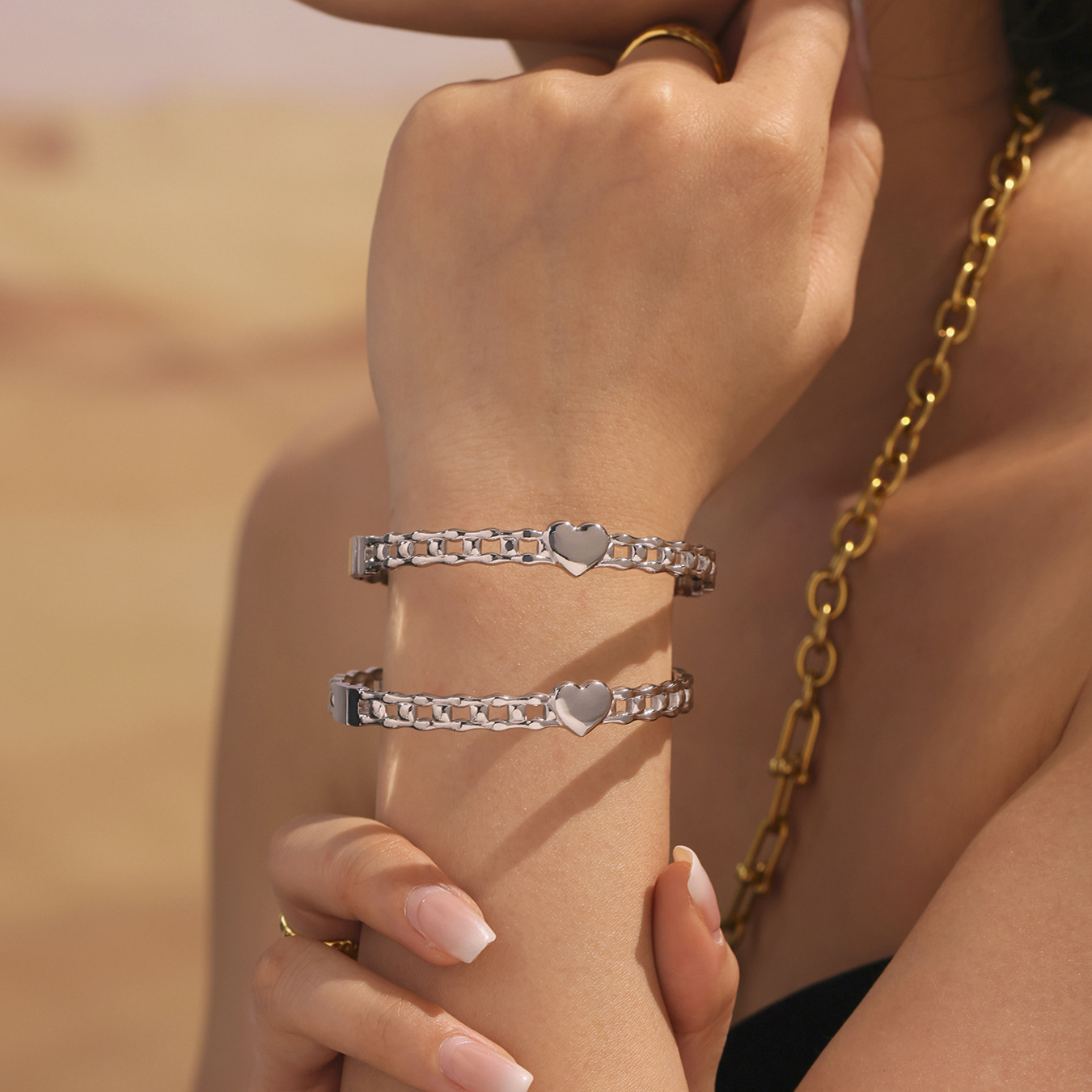 Cruach dhosmálta Bangle, 304 Cruach dhosmálta, Croí, plátáilte, jewelry faisin & do bhean & log, dathanna níos mó le haghaidh rogha, Díolta De réir PC
