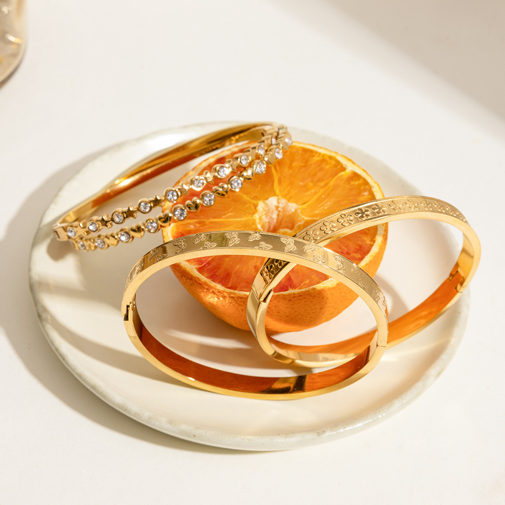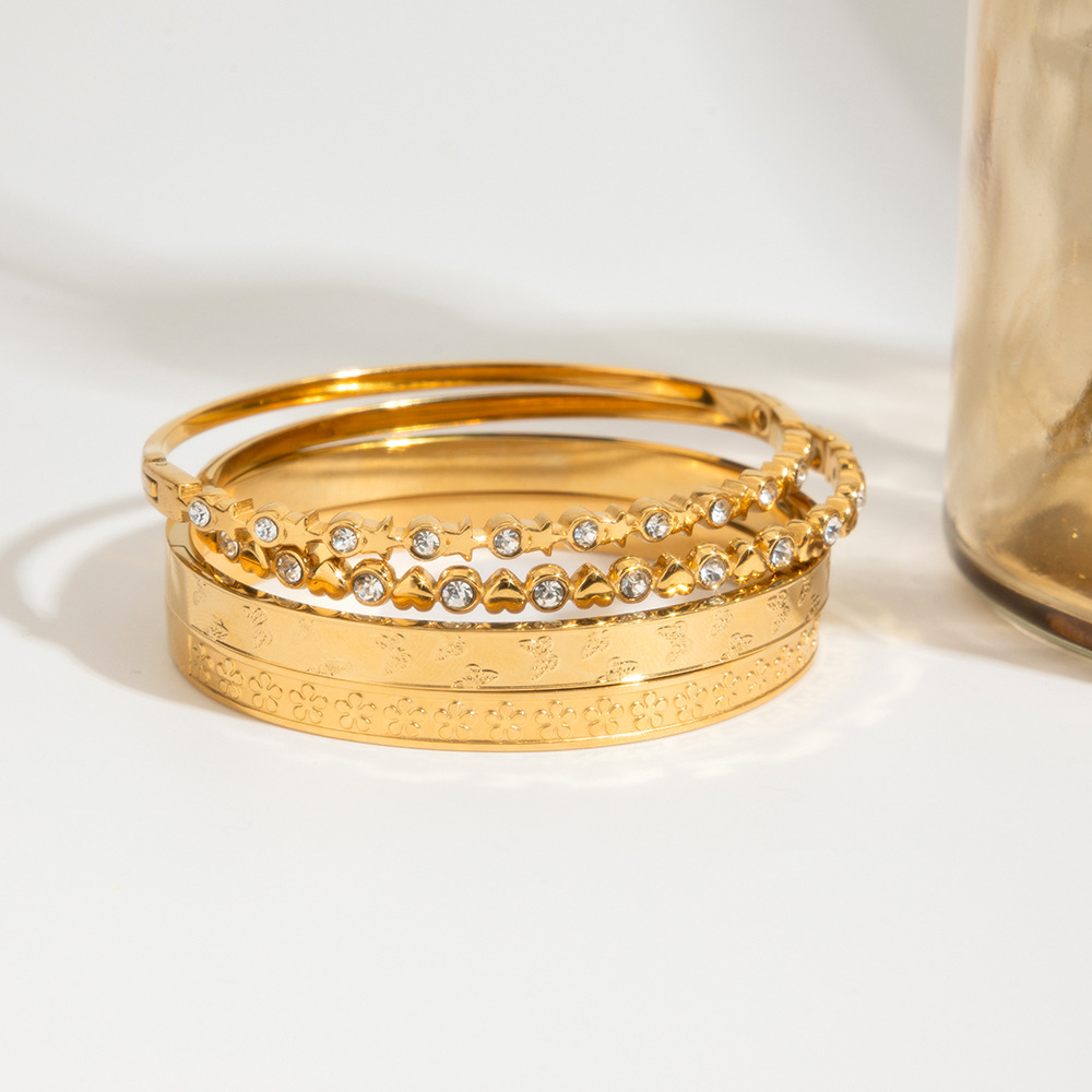 Cruach dhosmálta Bangle, 304 Cruach dhosmálta, 18K ór plátáilte, stíleanna éagsúla do rogha & do bhean & le rhinestone, Díolta De réir PC