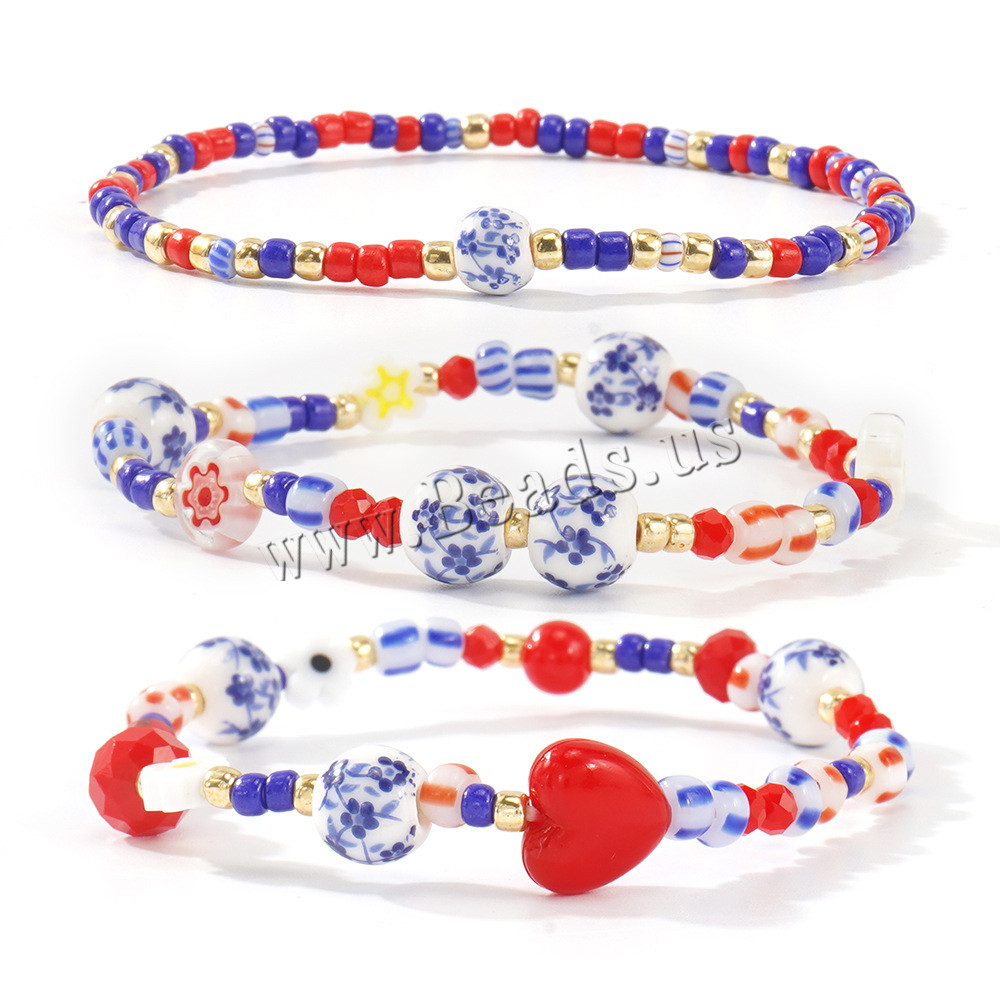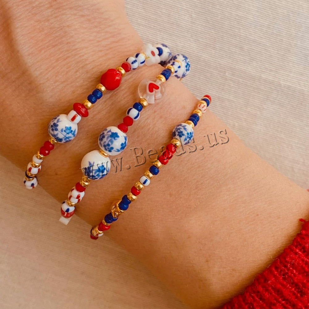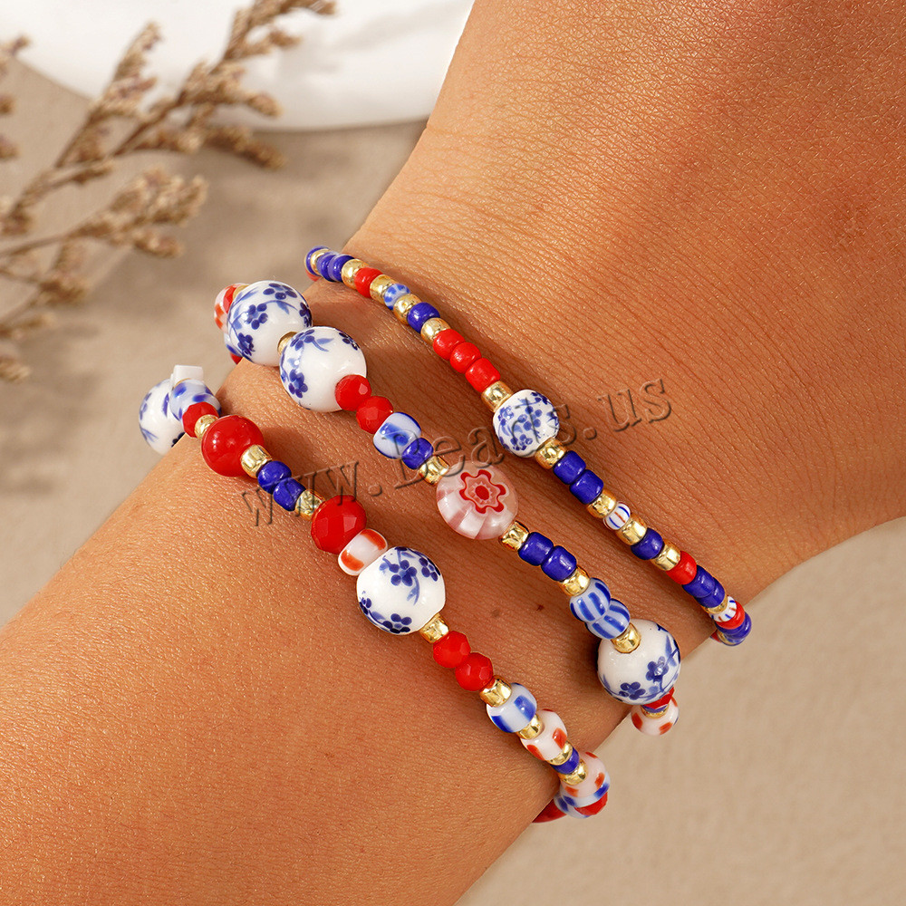 Bráisléid Lampwork, le Seedbead & Poircealláin & 304 Cruach dhosmálta, jewelry faisin, dathanna níos mó le haghaidh rogha, Díolta De réir PC