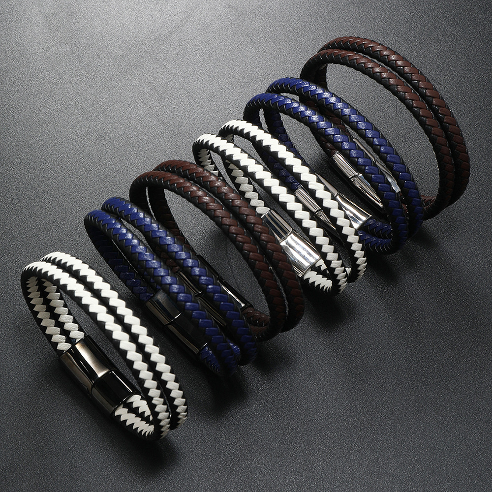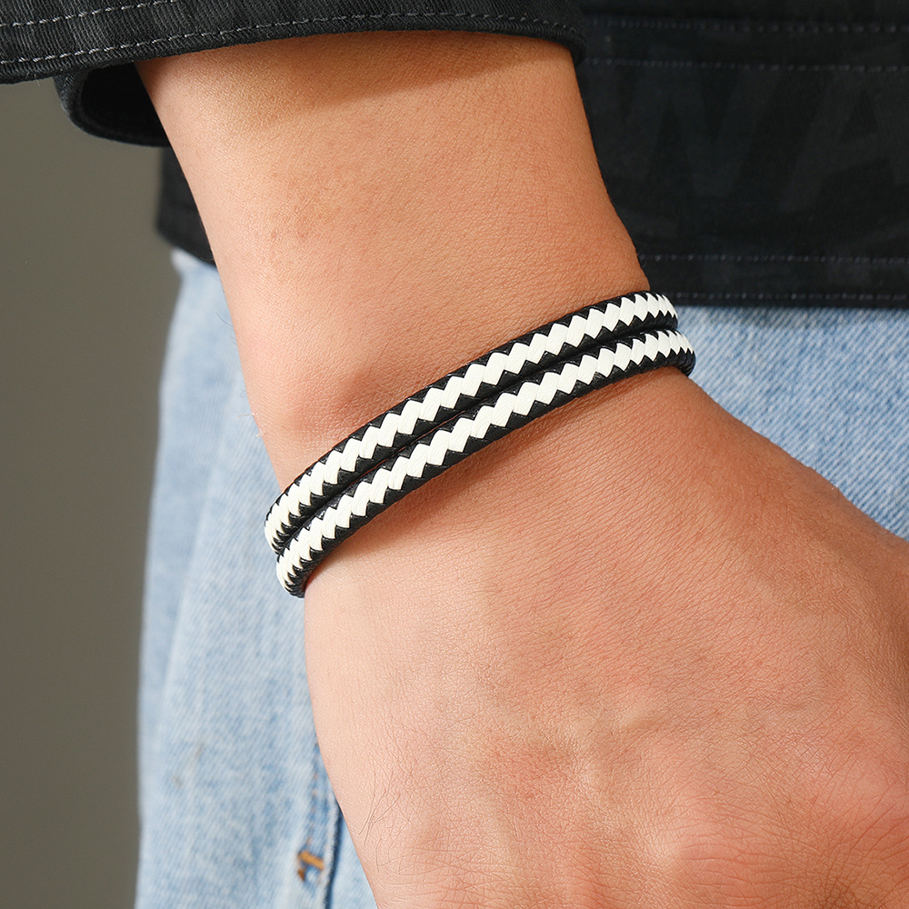Bráisléid Corda PU, 304 Cruach dhosmálta, le PU, trí shraith & fhad éagsúla do rogha & do fear, dubh, Díolta De réir PC
