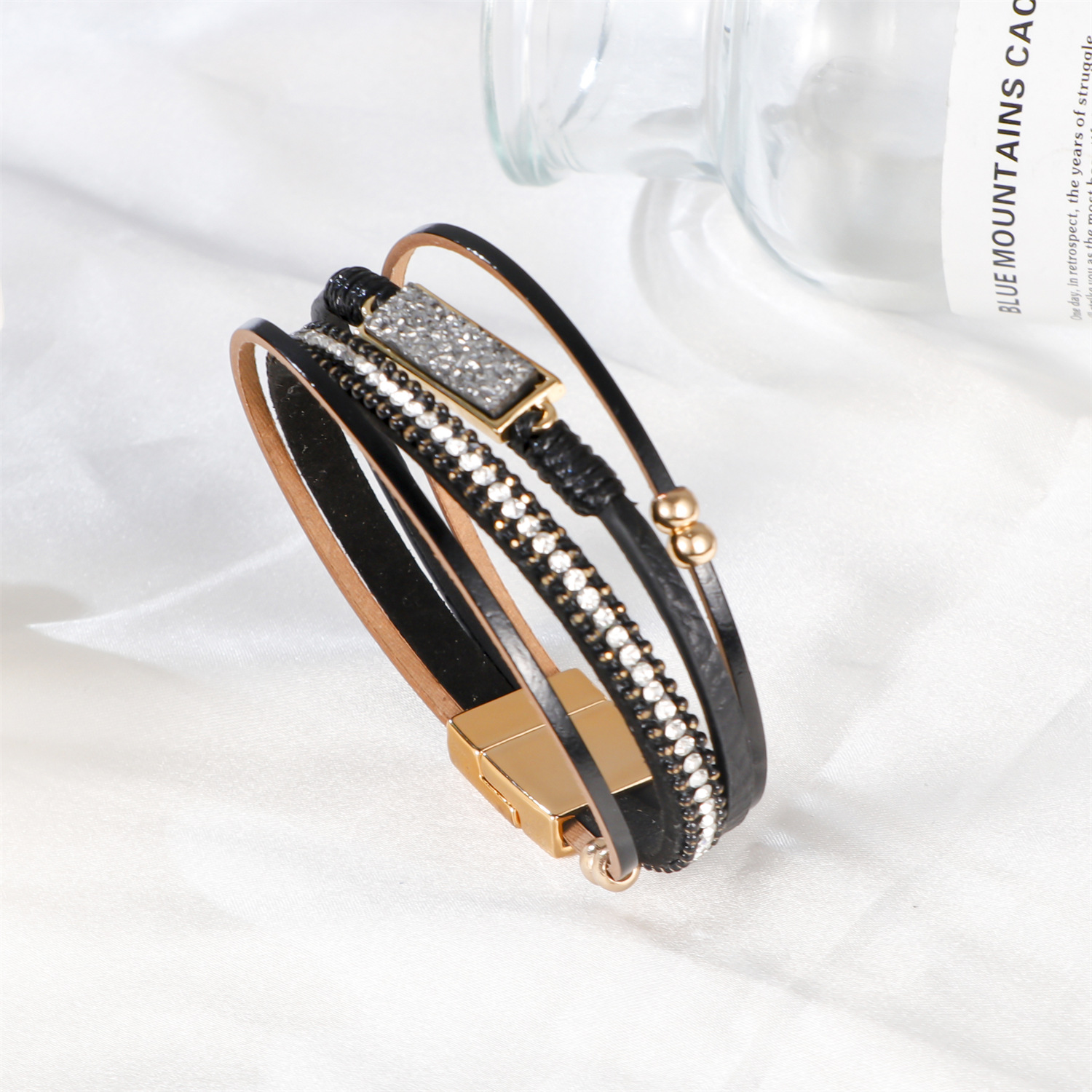Bráisléid Corda PU, le Sinc Alloy, multilayer & do bhean & le rhinestone, dathanna níos mó le haghaidh rogha, Fad 19 cm, Díolta De réir PC