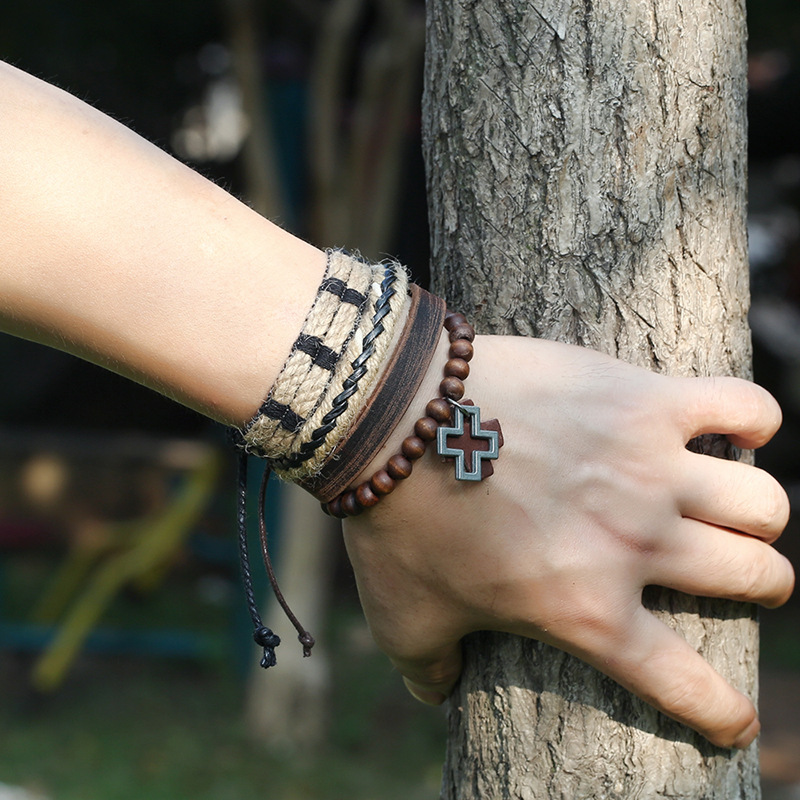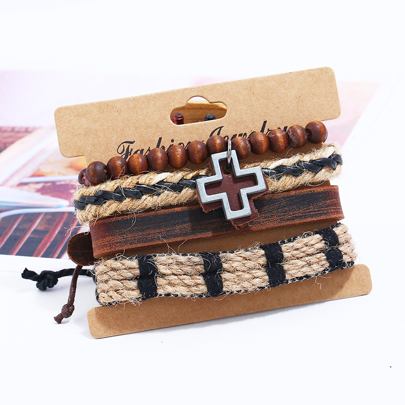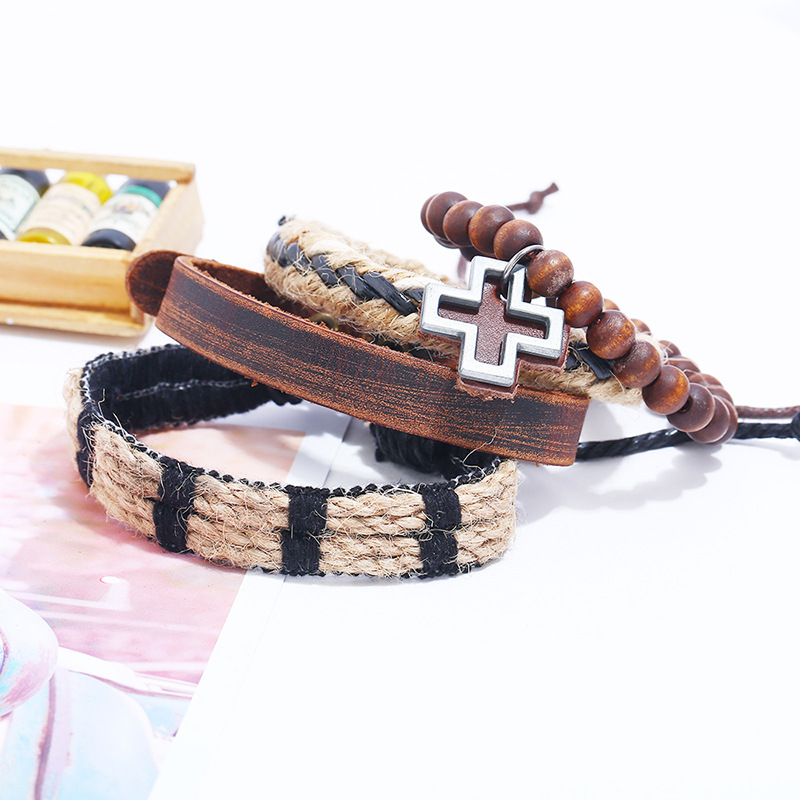 Bráisléad Cowhide, Cnáib, le PU & Adhmad & Sinc Alloy, dath an óir plated, 4 phíosa & jewelry faisin, dathanna níos mó le haghaidh rogha, 260x11mm, Fad 18 cm, 4ríomhairí pearsanta/Socraigh, Díolta De réir Socraigh
