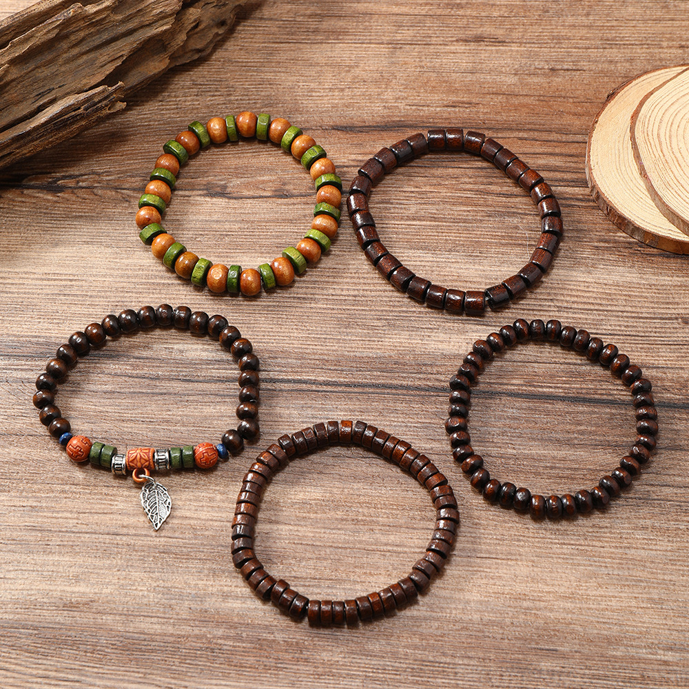 Bráisléad Wrap, Adhmad, le Coco & Sinc Alloy, lámhdhéanta, 5 phíosa & jewelry faisin & unisex, il-daite, Díolta De réir Socraigh