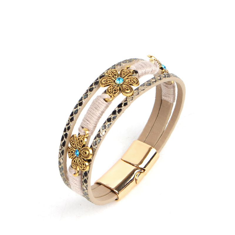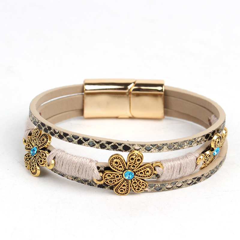 Bráisléid Corda PU, Sinc Alloy, le Snáithín Cadáis & PU, jewelry faisin & multilayer, dathanna níos mó le haghaidh rogha, Díolta De réir PC