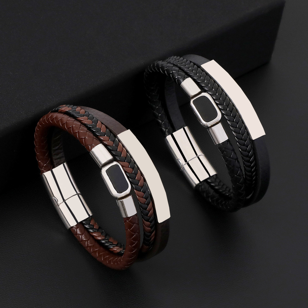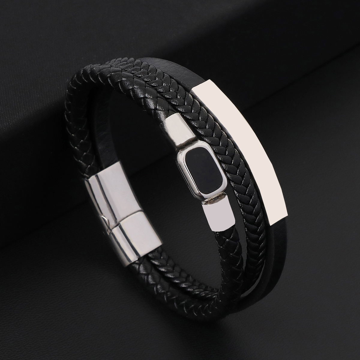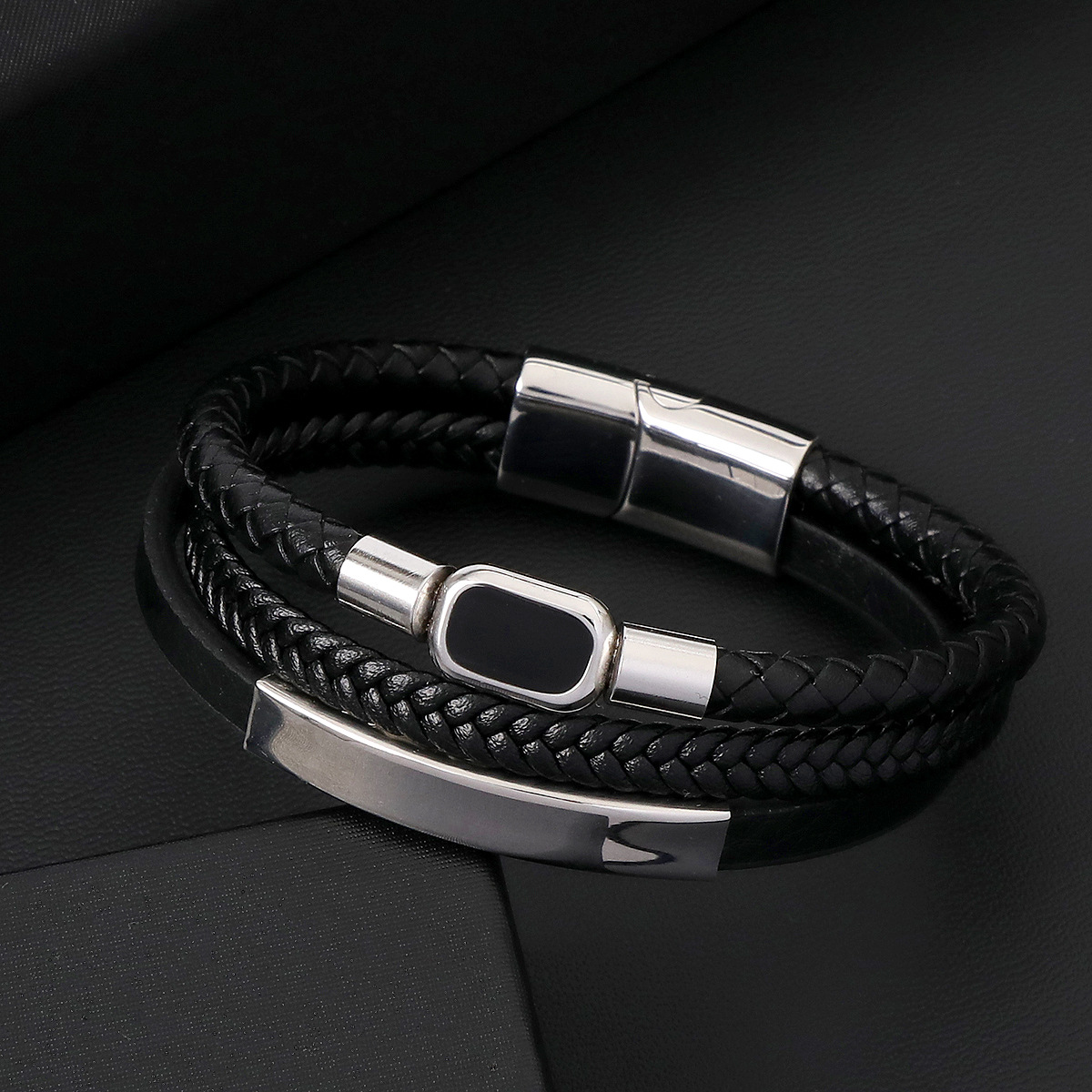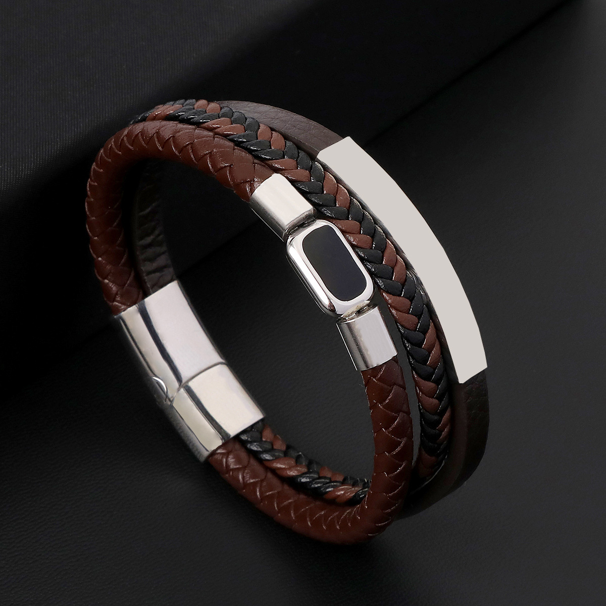Bráisléid Corda PU, 304 Cruach dhosmálta, le PU Microfiber & Cowhide & 316 Cruach dhosmálta, lámhdhéanta, trí shraith & do fear & cruan, dathanna níos mó le haghaidh rogha, Fad 21 cm, Díolta De réir PC
