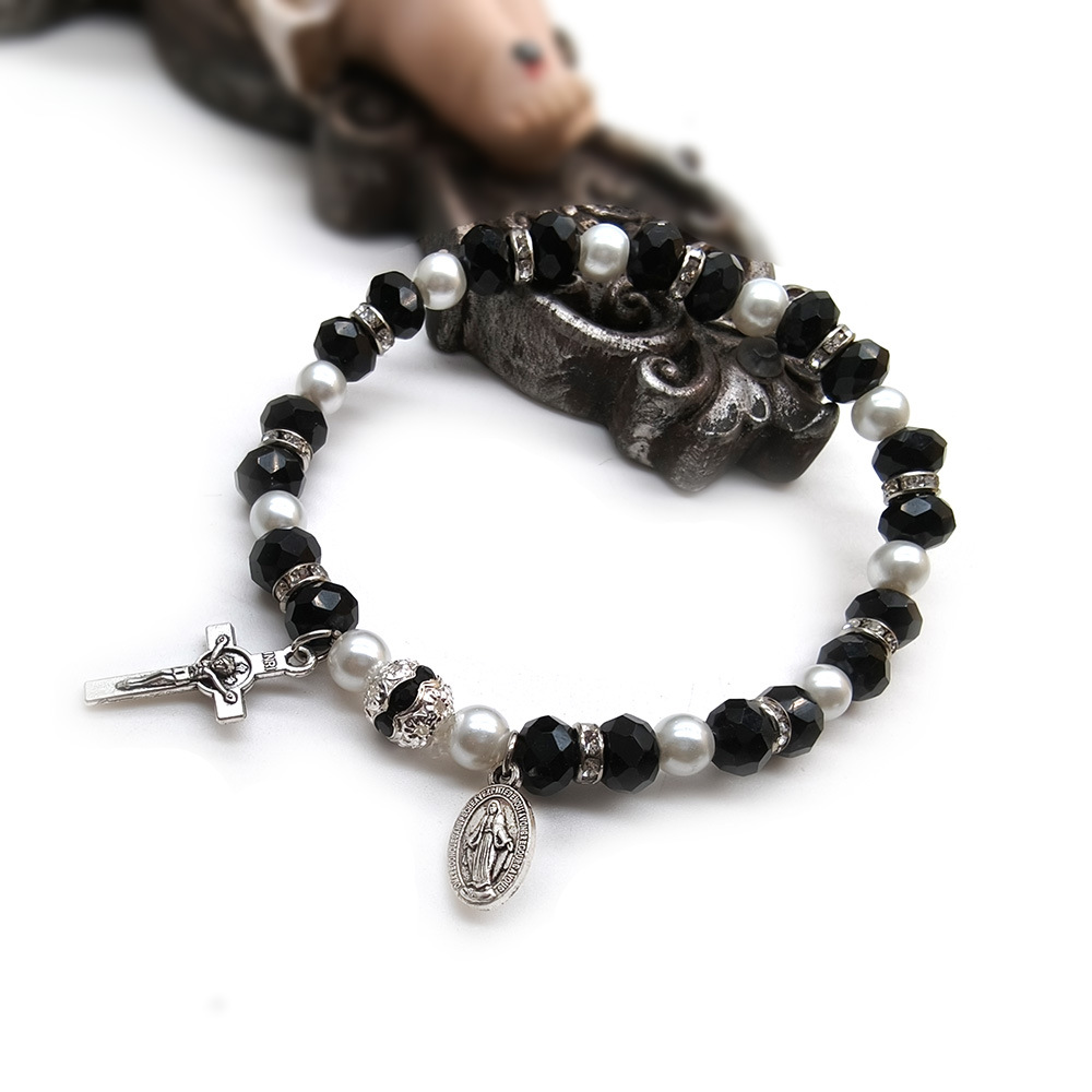 Bráisléid Crystal, Sinc Alloy, le Crystal & Pearl Plaisteacha, Cross, dath airgid plated, jewelry faisin, dathanna níos mó le haghaidh rogha, 8mm, Fad 21 cm, Díolta De réir PC