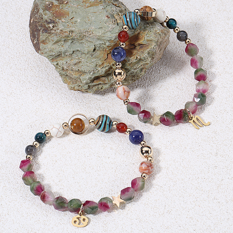 Bráisléid gemstone, 304 Cruach dhosmálta, le Prehnite, 12 Comharthaí an Stoidiaca, plátáilte, jewelry faisin, dathanna níos mó le haghaidh rogha, 6-8mm, Díolta Per 19 cm Snáithe