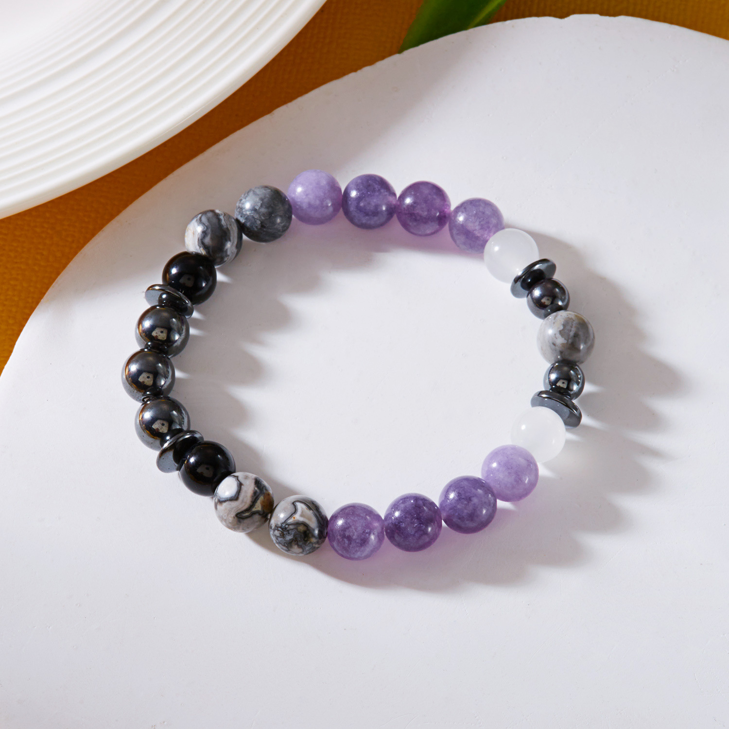 Bráisléid gemstone, fluorite colorful, le Jade Bán & Hematite & Aimitis, Babhta, lámhdhéanta, jewelry faisin & unisex, Fad Thart 5.9-7.87 Inse, Díolta De réir PC