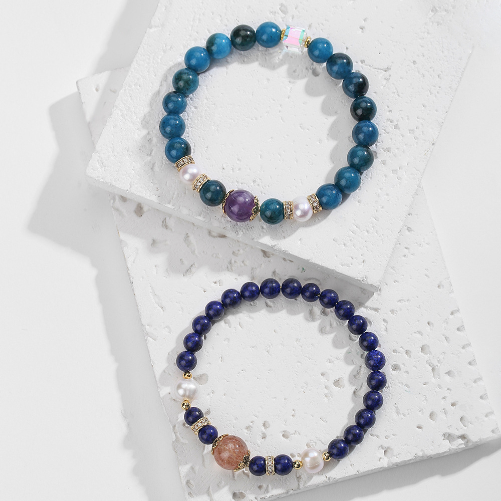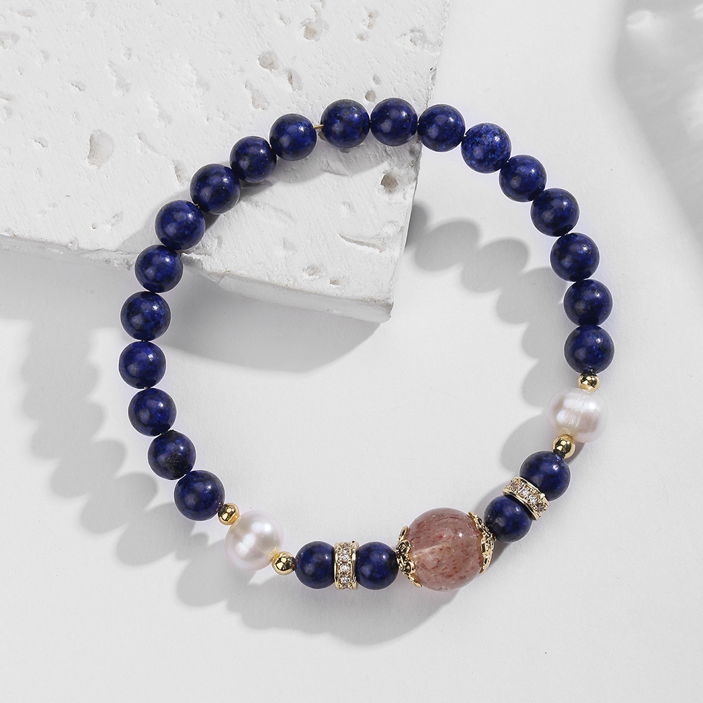 Bráisléid gemstone, Lapis Lazuli, le Leaisteacha Snáithe & Pearl Fionnuisce & sútha talún Grianchloch & Prás, lámhdhéanta, jewelry faisin & ábhair éagsúla do rogha & unisex, Díolta De réir PC
