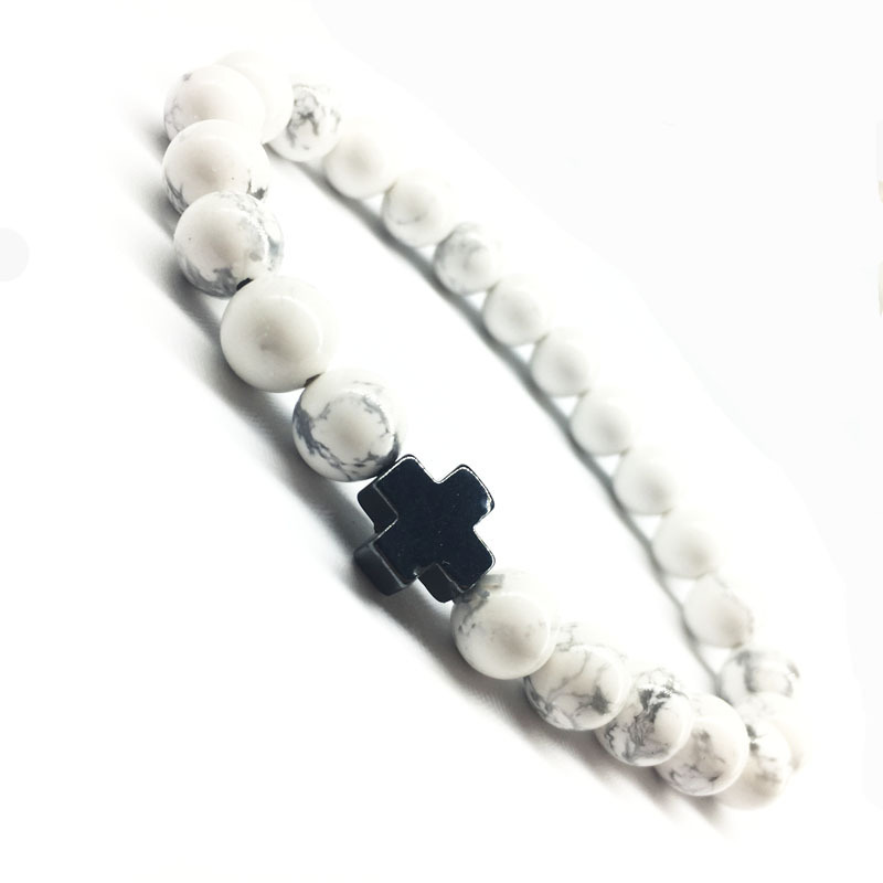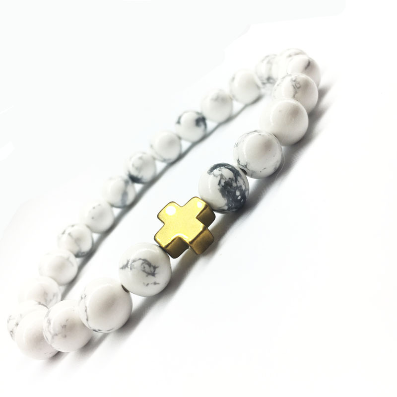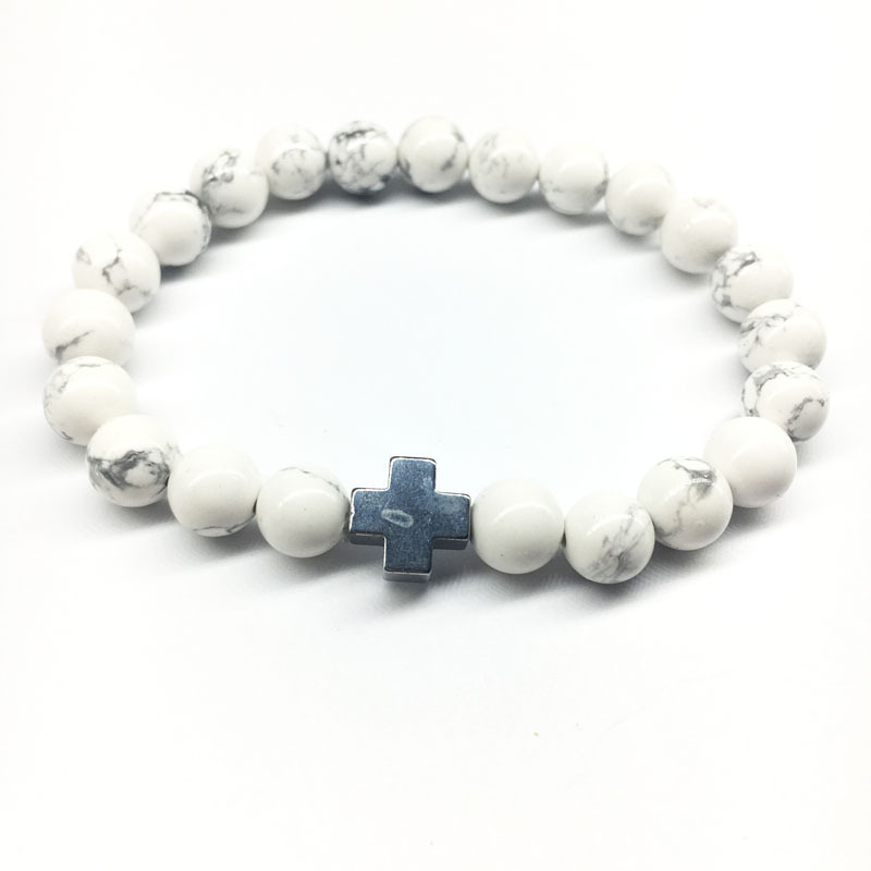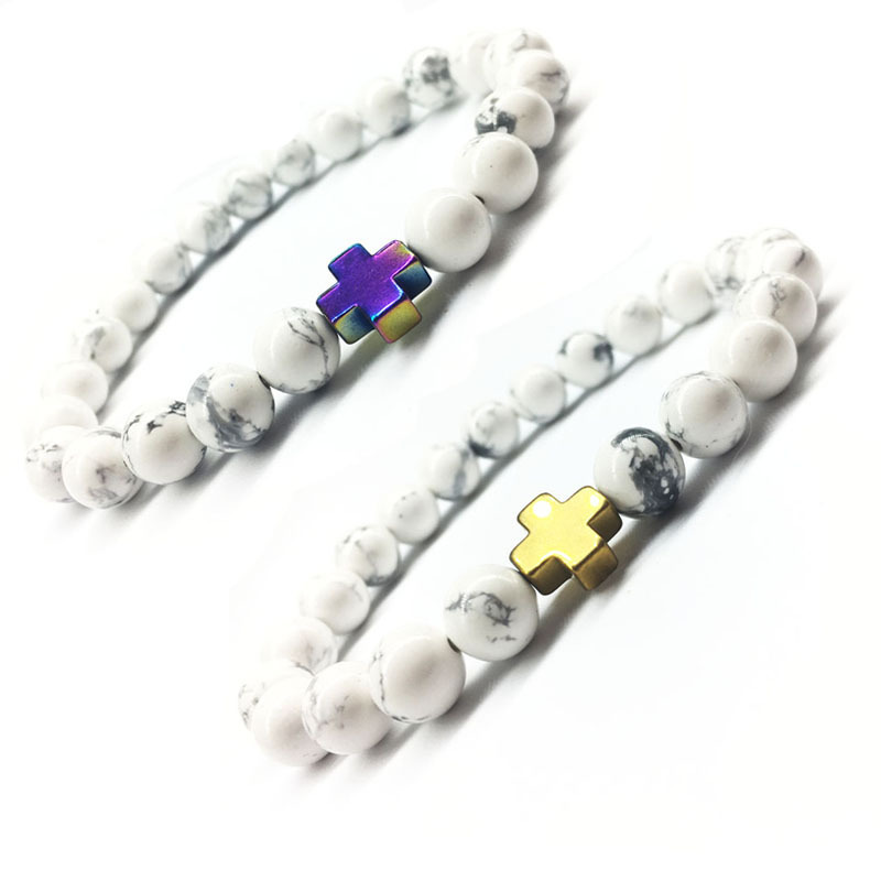 Bráisléid gemstone, Magnesite, le Iarann, Cross, jewelry faisin, dathanna níos mó le haghaidh rogha, 8mm, Fad 21 cm, Díolta De réir PC