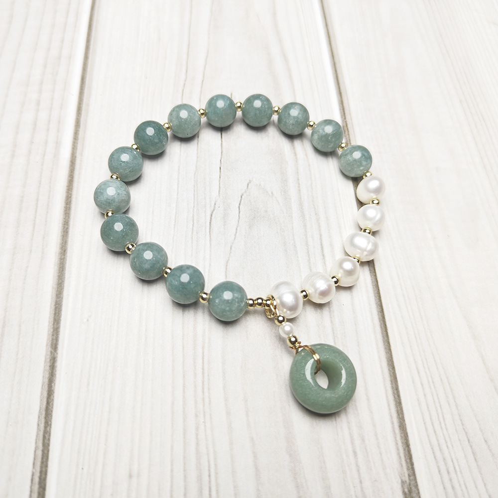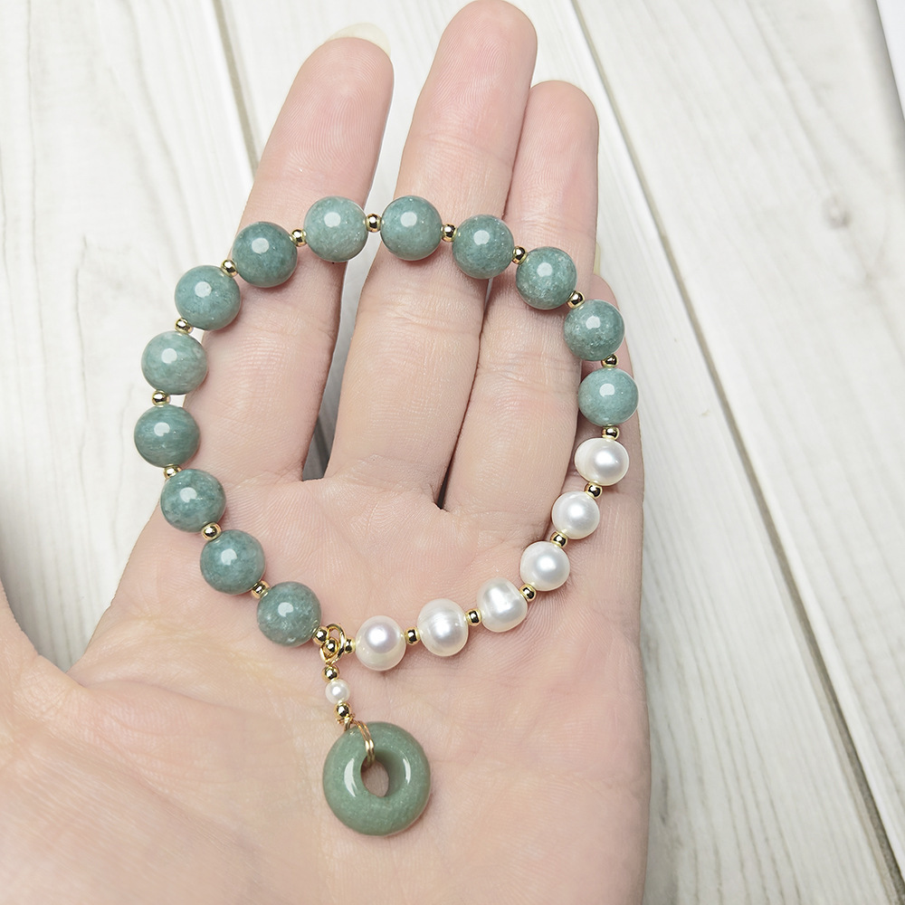 Bráisléid gemstone, Aventurine Glas, le Pearl Plaisteacha & 304 Cruach dhosmálta, jewelry faisin, dathanna measctha, 8mm, Fad 21 cm, Díolta De réir PC