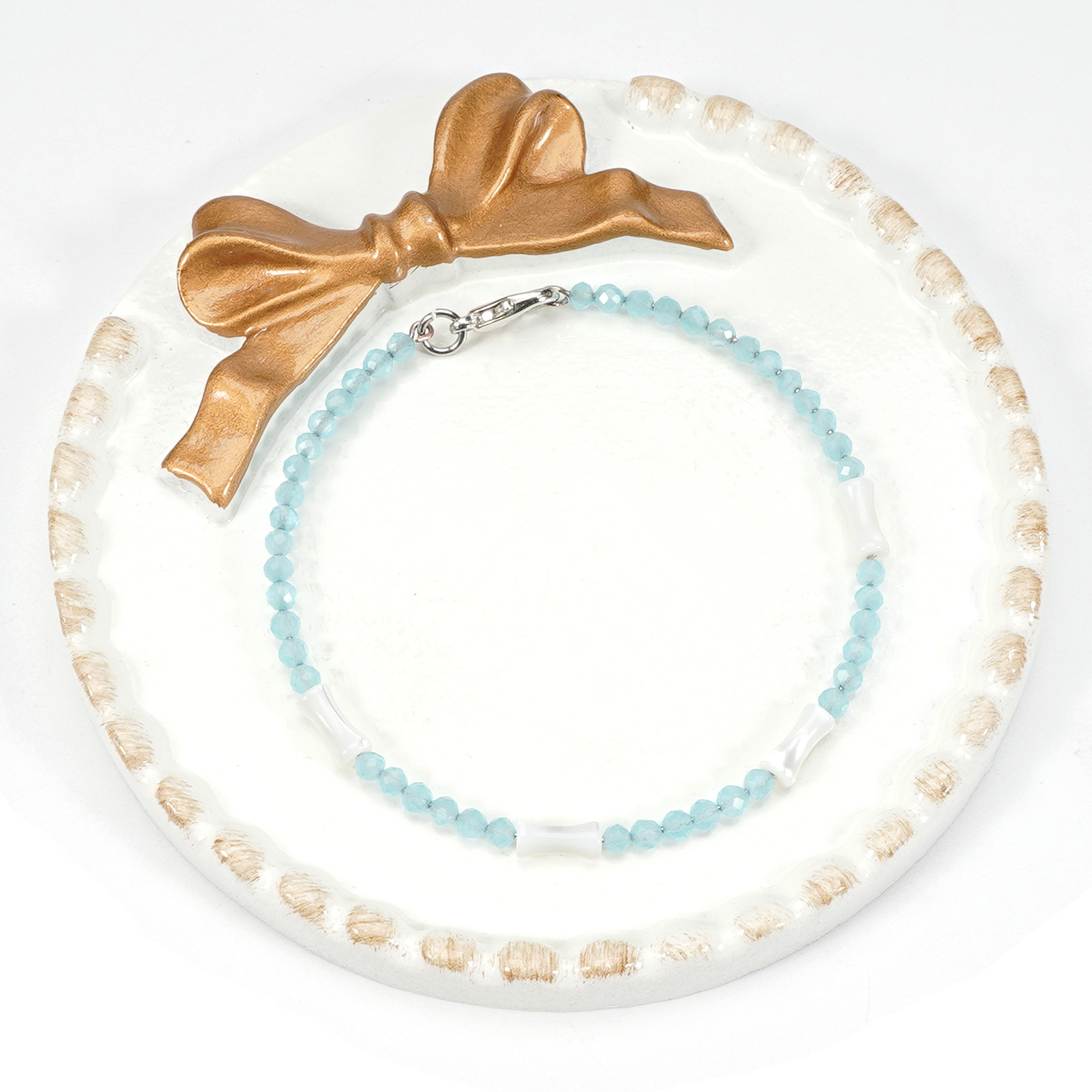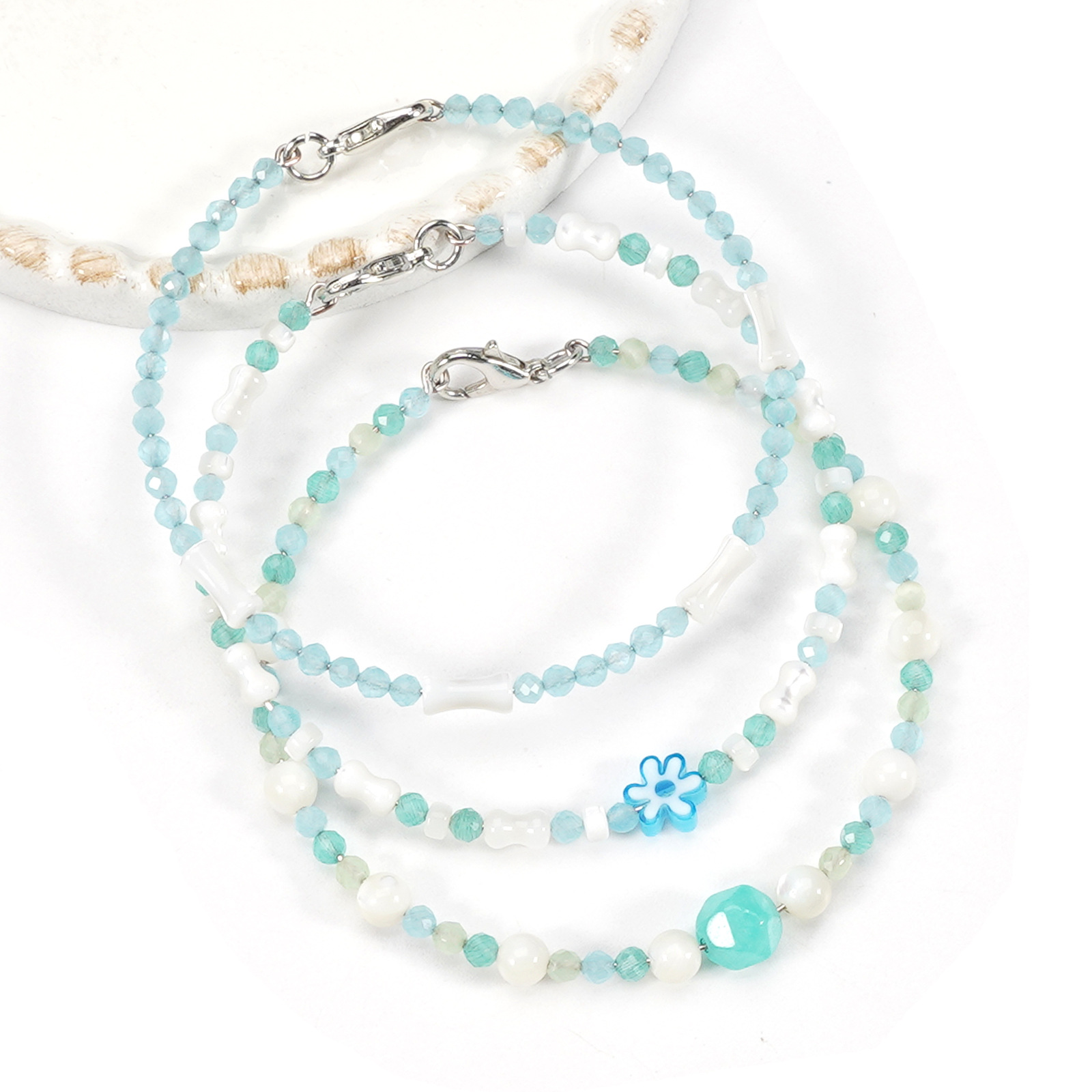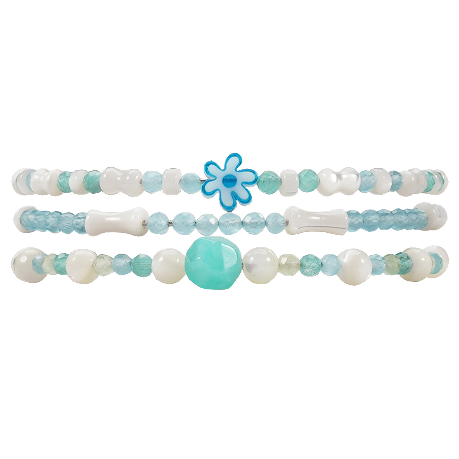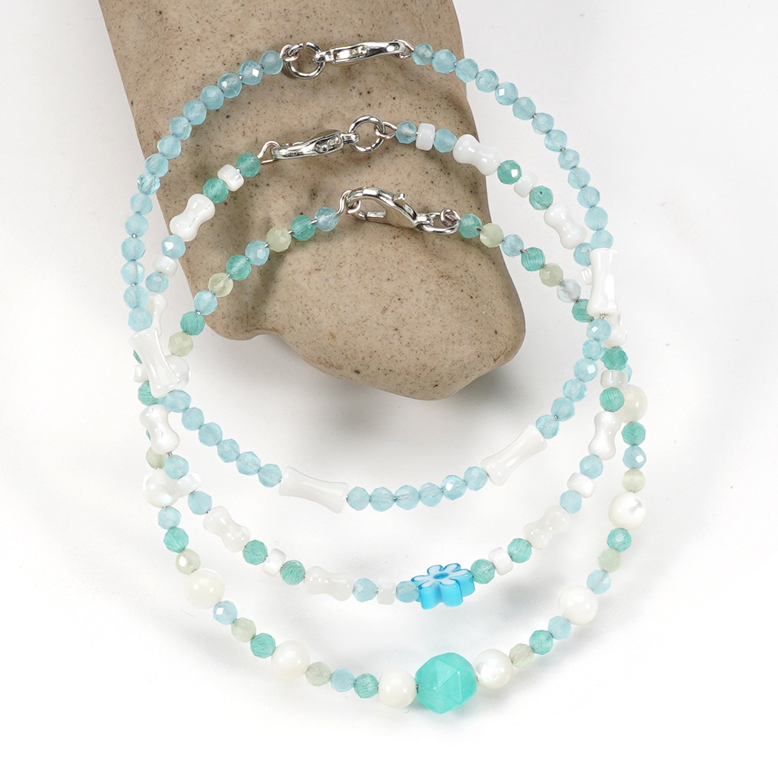 1:Aquamarine Bracelet2:Flower Glaze Bracelet3:Slub Shell Bracelet4:Crystal suit three-piece set