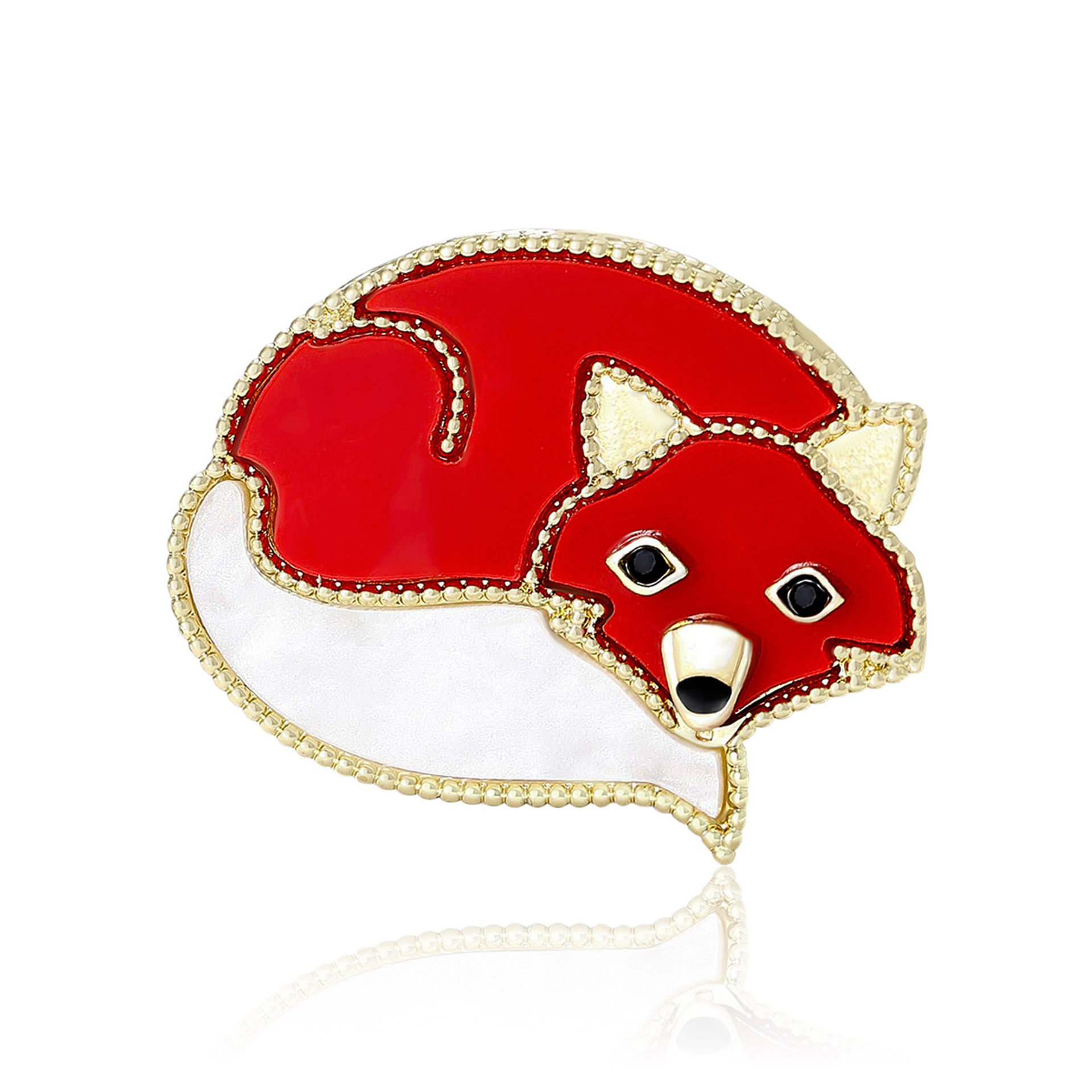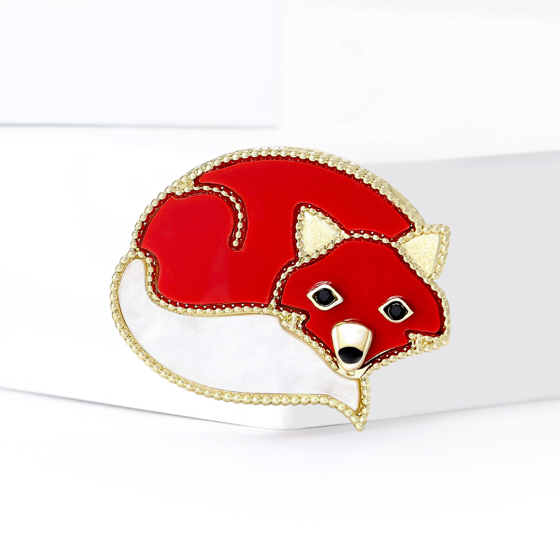 Bróiste Aicrileach, le Sinc Alloy, Fox, dath an óir plated, jewelry faisin & le rhinestone, dathanna measctha, Díolta De réir PC