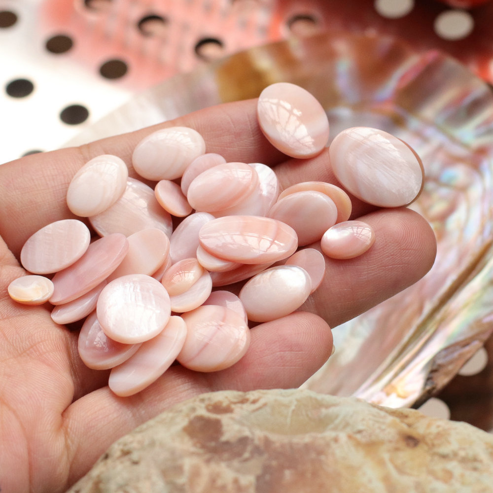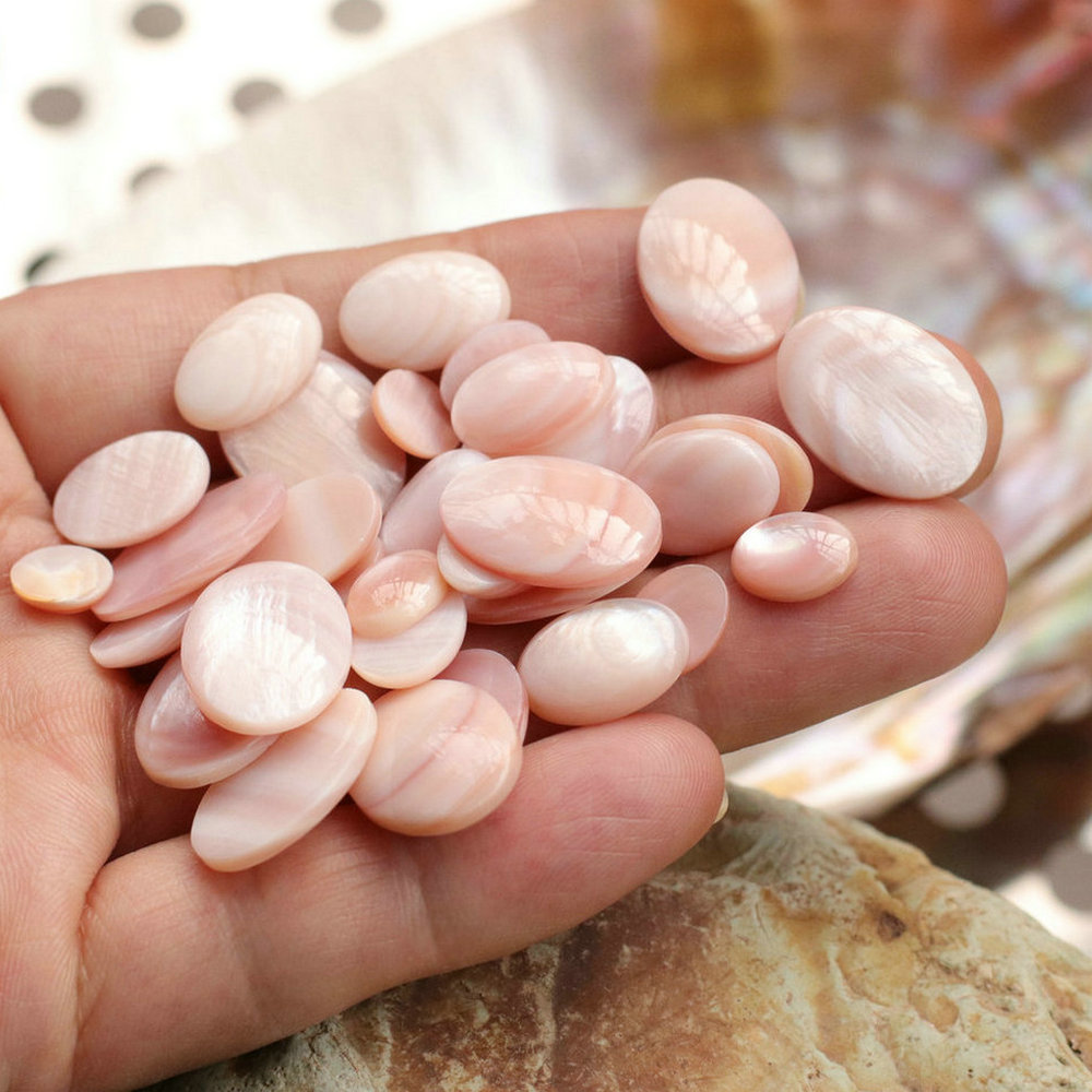 Bhlaosc cabochons, Shell, Oval, DIY & méid éagsúla do rogha, bándearg, Díolta De réir PC