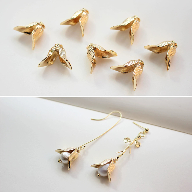 Prás Bead Cap, Flower, plátáilte, jewelry faisin & do bhean, dathanna níos mó le haghaidh rogha, 9x15mm, Díolta De réir PC