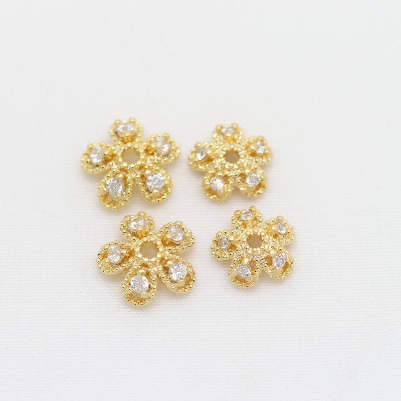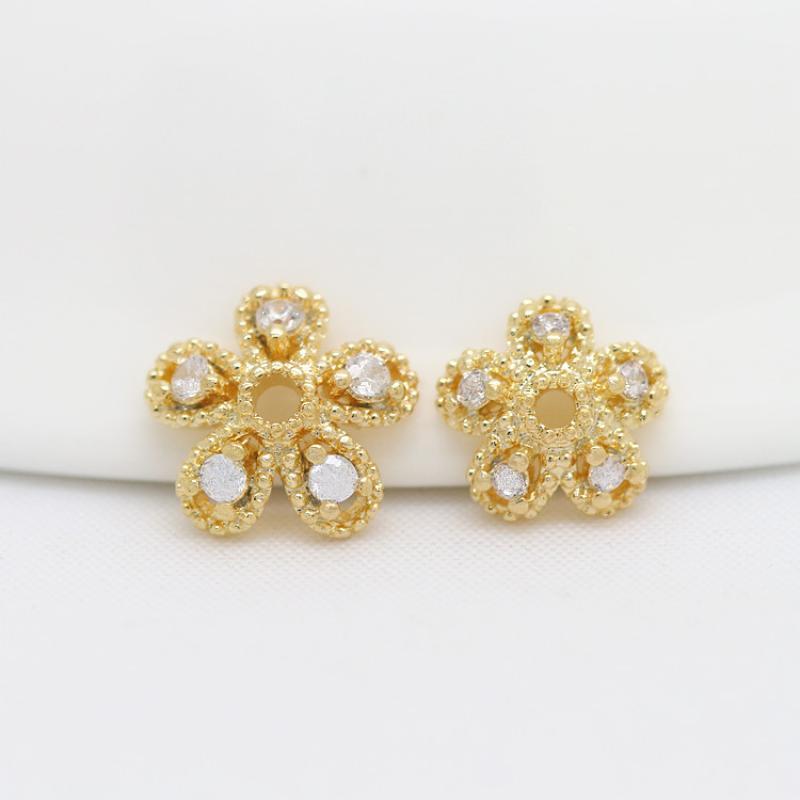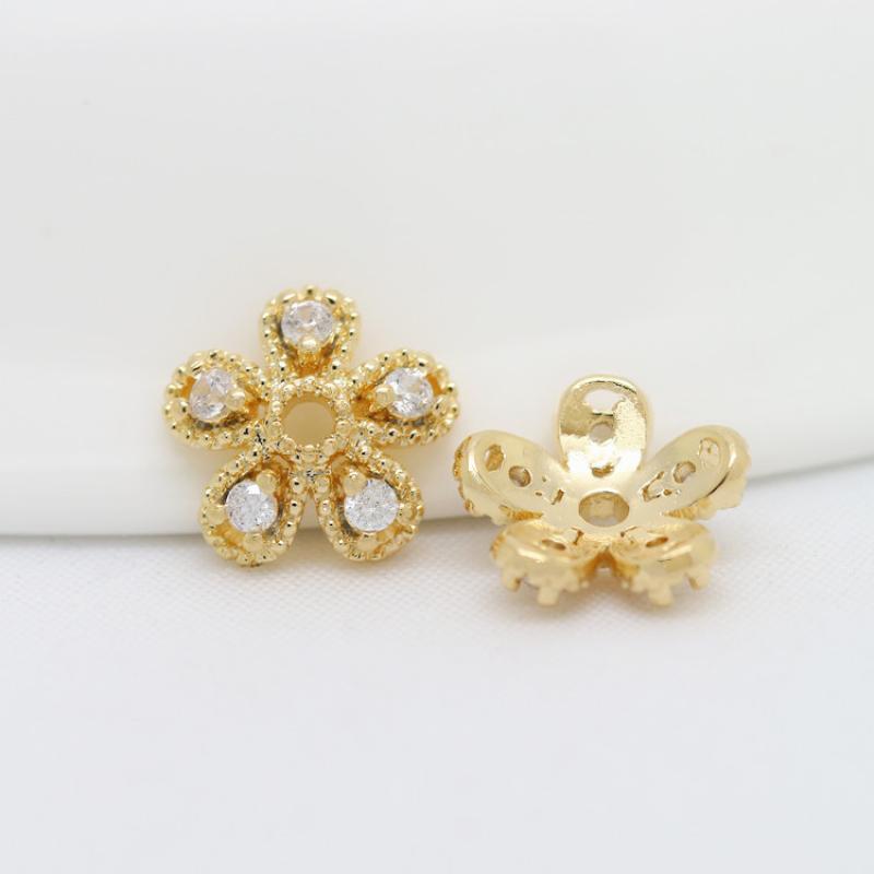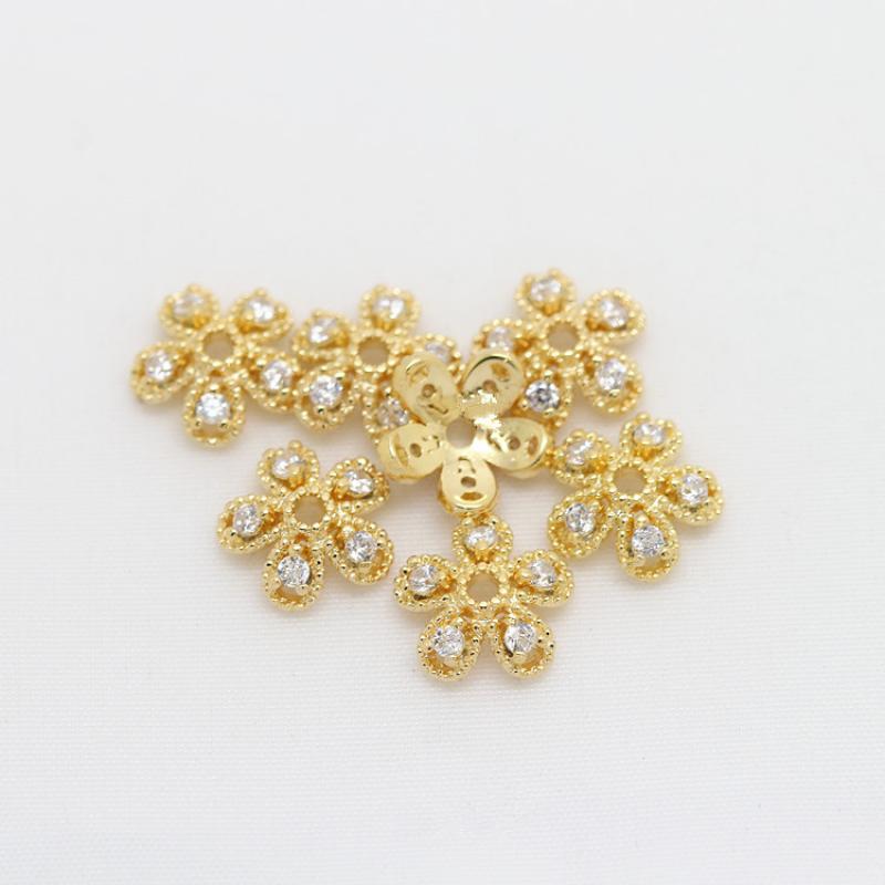 Prás Bead Cap, Flower, dath an óir plated, DIY & méid éagsúla do rogha & micrea réiteach zirconia ciúbach, Díolta De réir PC