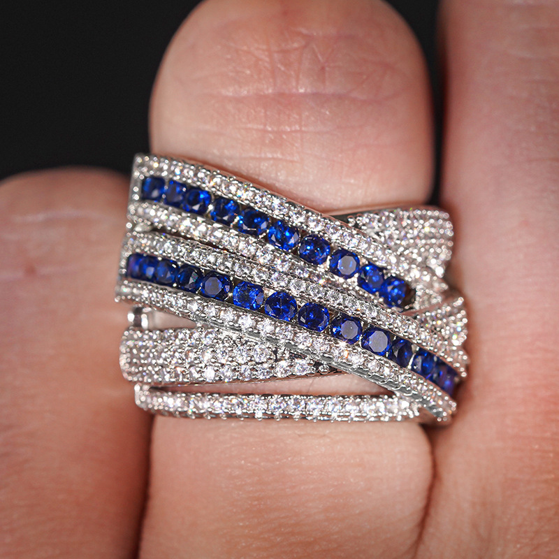 Ciúbach Circonia Micrimhilseogra réiteach Ring Prás, plátáilte, méid éagsúla do rogha & micrea réiteach zirconia ciúbach & do bhean & dhá ton & log, Díolta De réir PC